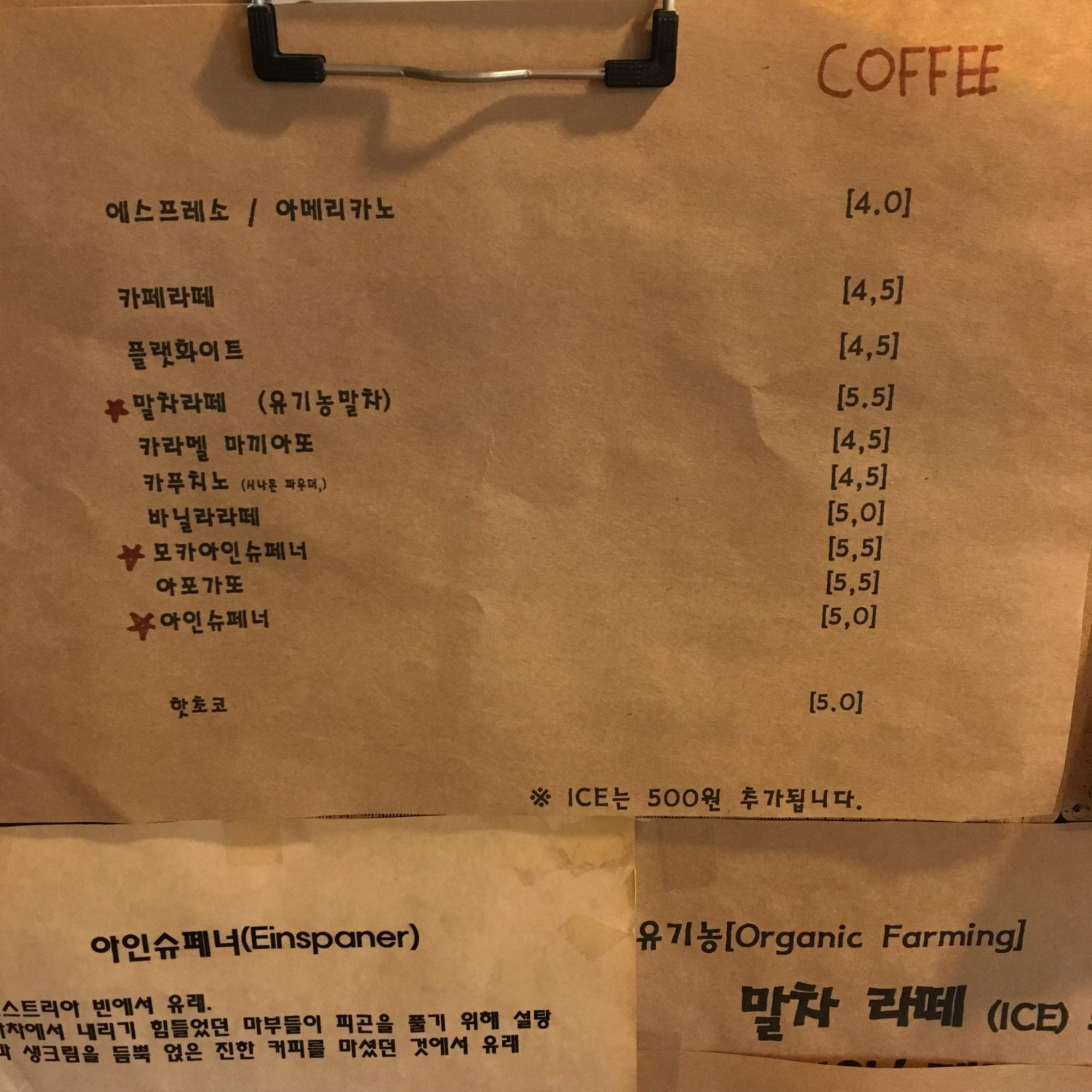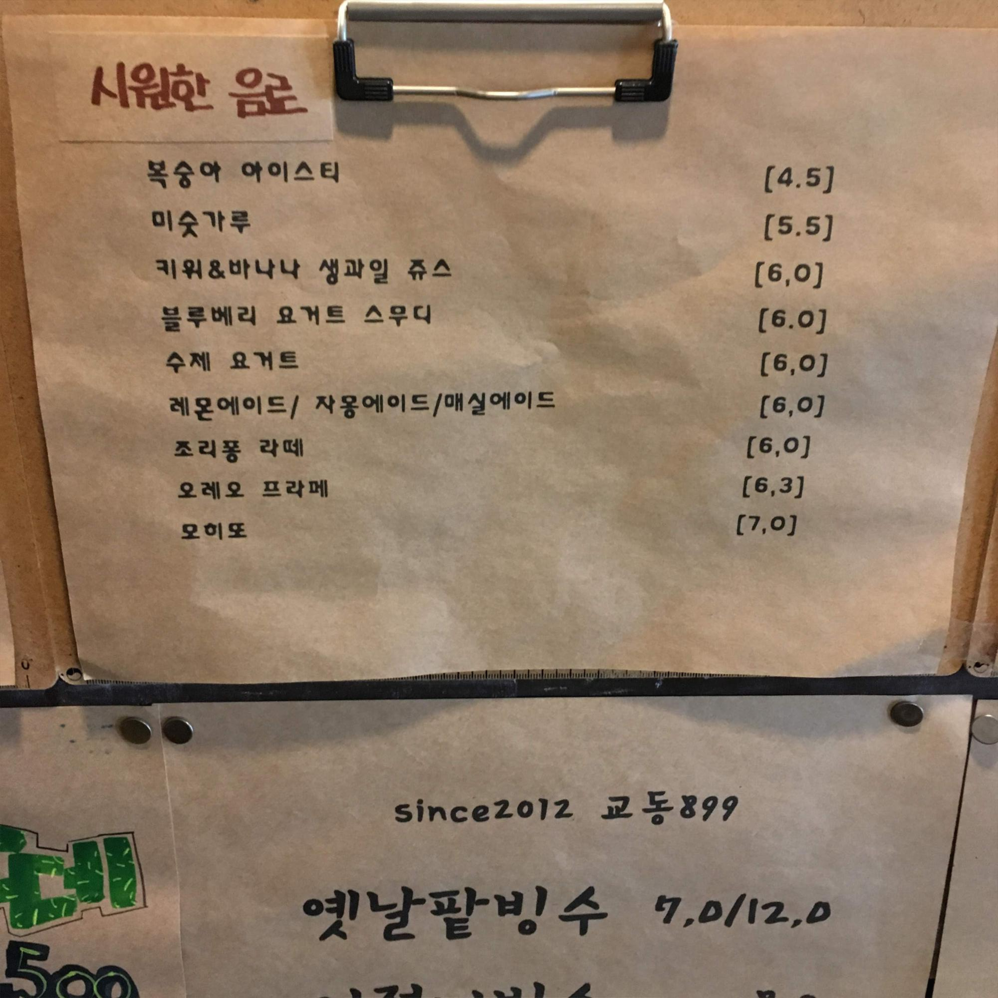 메뉴 및 가격 Menu with Prices :