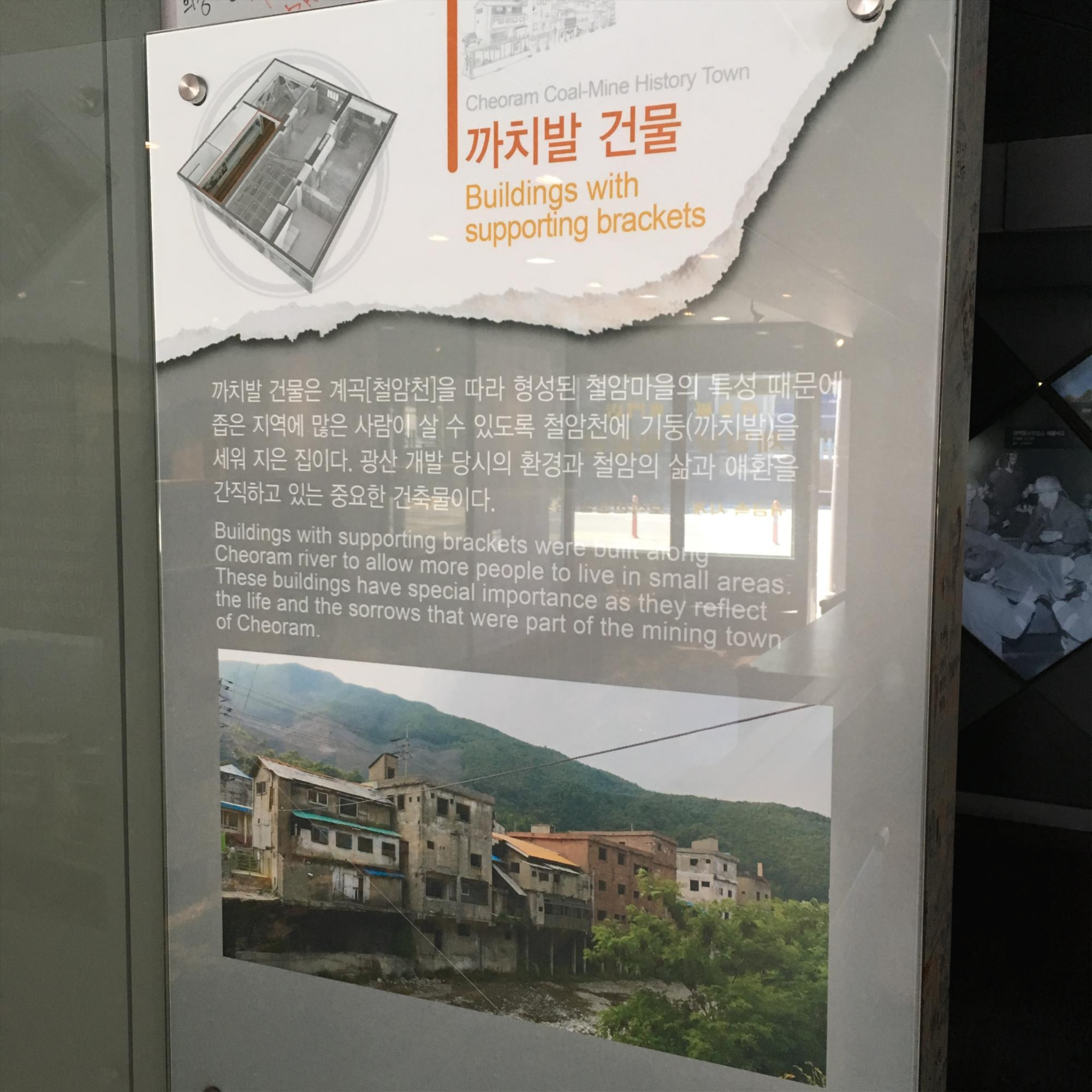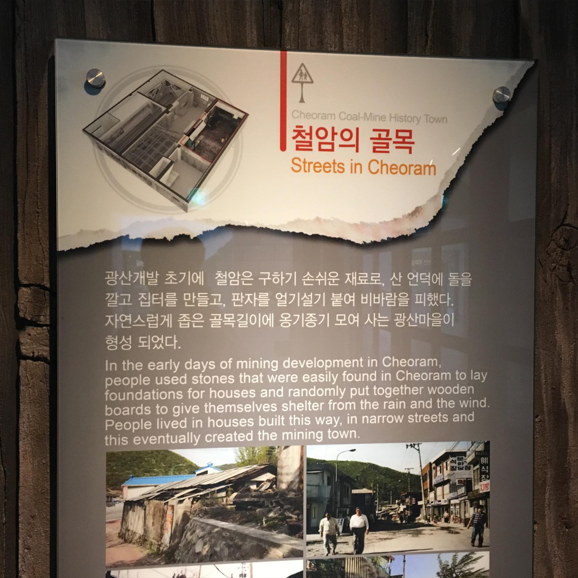 다음날 아침, 전날 밤에는 어두워 구경하지 못 했던 사북읍내와 시장을 돌아봤습니다. 시장은 현대화 사업을 거처 깔끔하게 유지되었고, 거리 곳곳에는 사북의 역사를 기록한 안내판들이 있었습니다. 하지만 너무 이른 아침에 방문해서였을까, 사람들이 다니지 않는 생기를 잃은 느낌이었습니다. 우리나라의 시골 마을을 여행하다보면 정부의 지원을 받아 깔끔하게 시설이 정비되어 있으나, 정작 사람이 없어 휑한 느낌을 받는 곳이 많습니다.