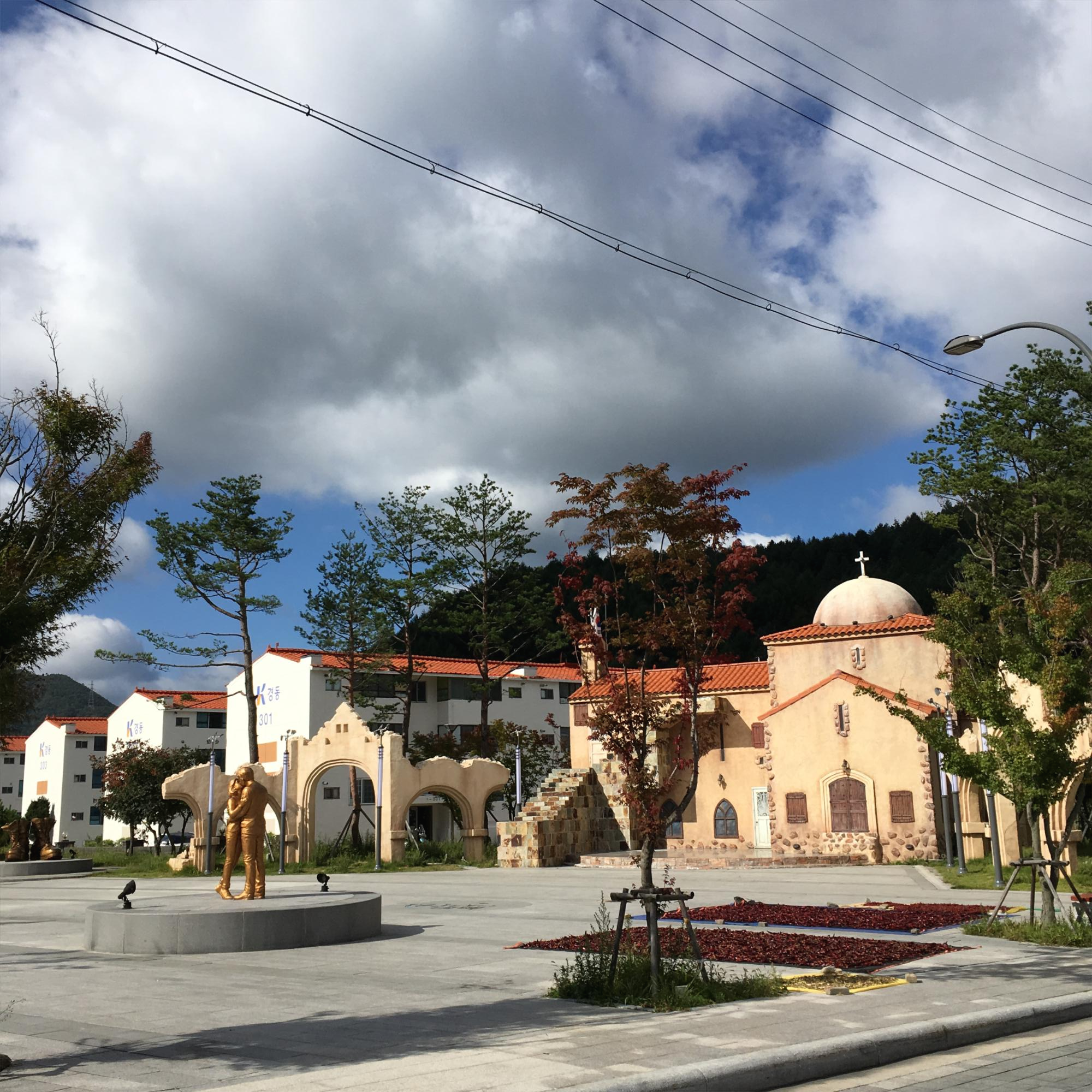 지금은 헤어진... 송중기와 송혜교 커플의 동상... 통리에는 드라마 태양의 후예 공원이 있습니다.