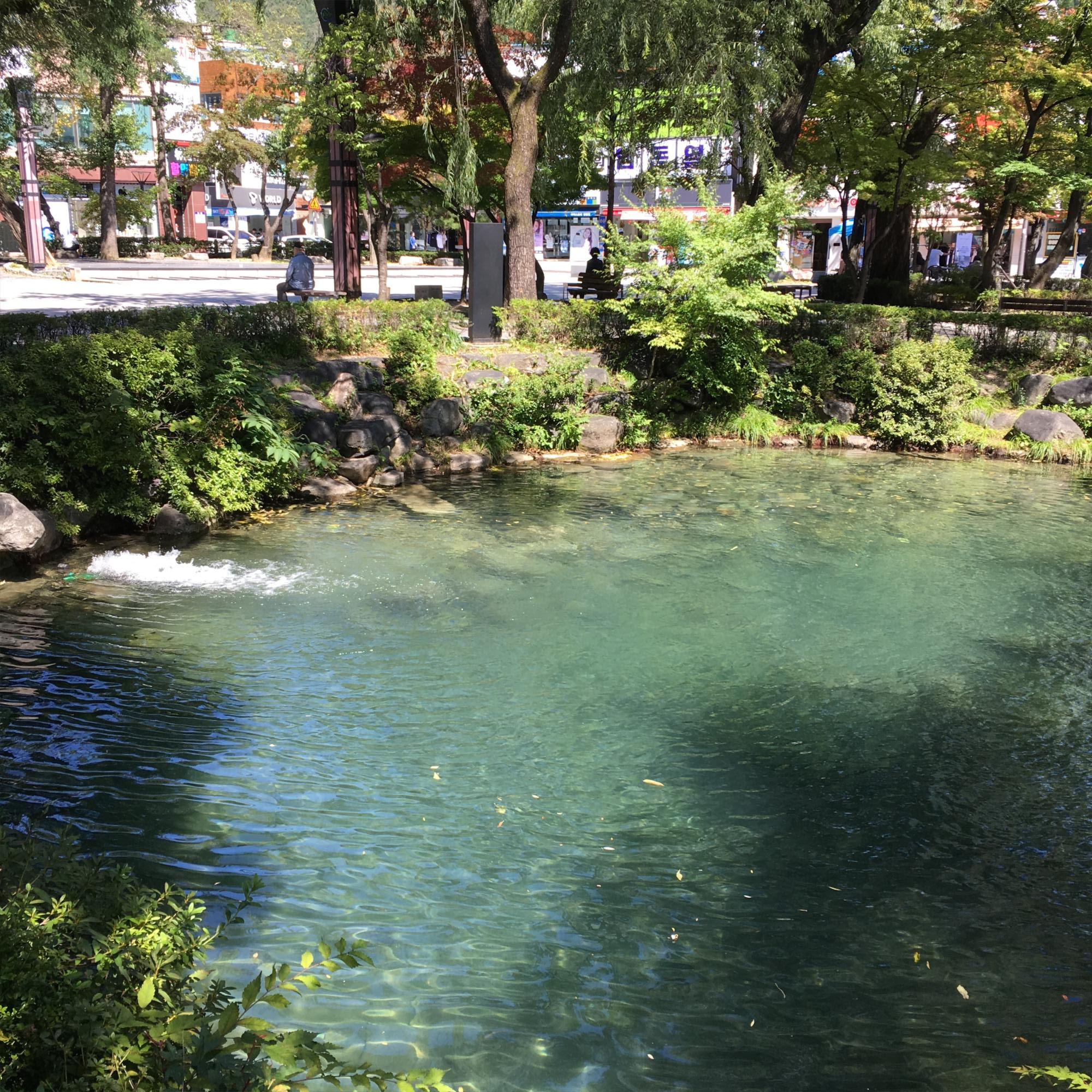 태백시의 중심(?) 황지 연못입니다. 근처에 황지자유시장과 파리바게트 등이 있습니다.