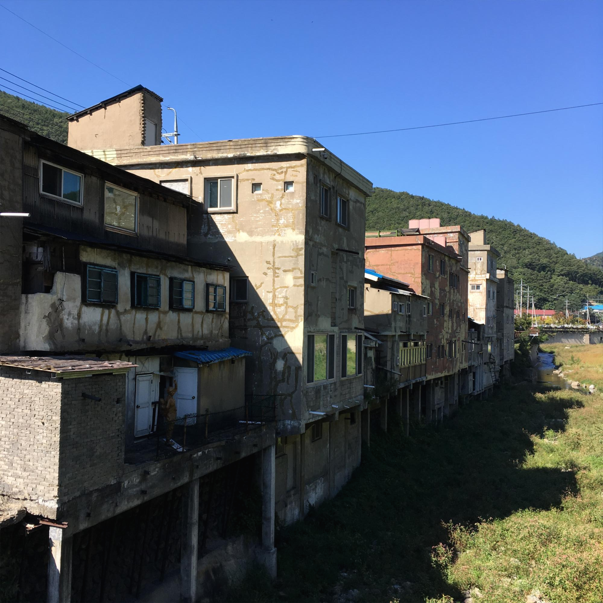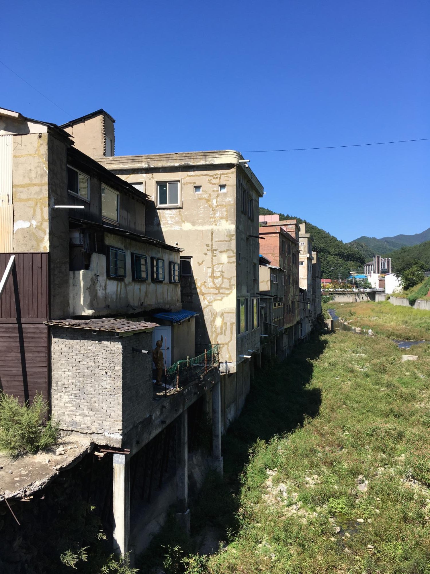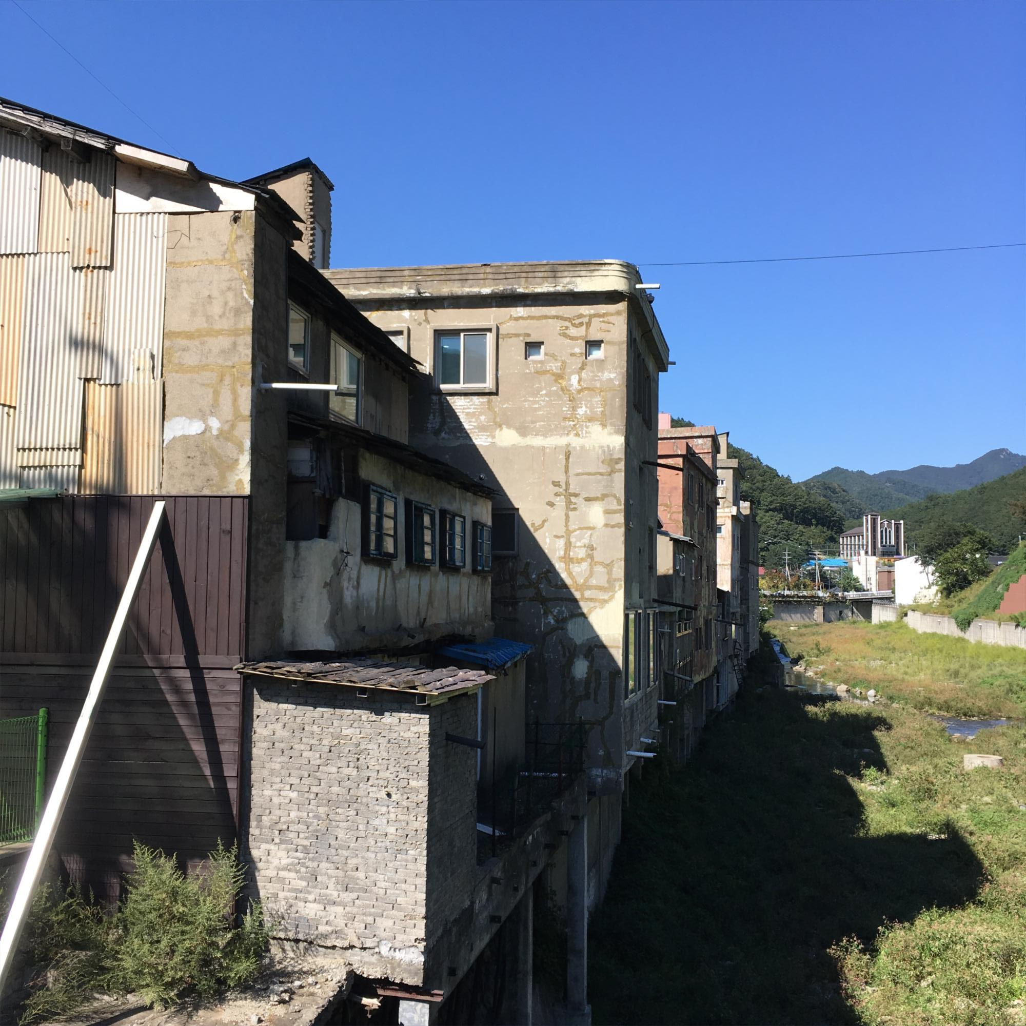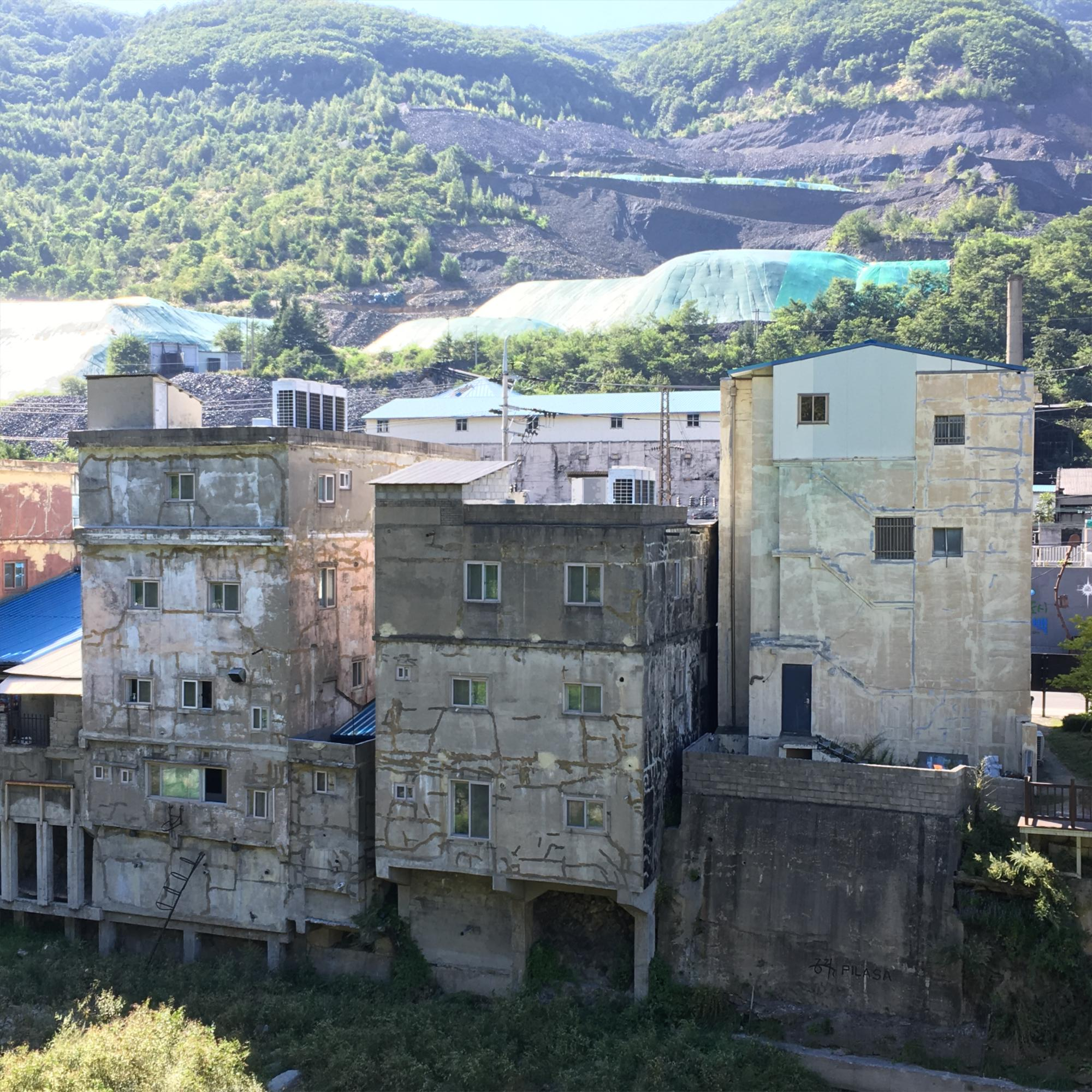 사북역 앞에 있는 빈 건물. 비단 사북뿐만 아니라 강다방 게스트하우스가 위치한 강릉 주문진에도 빈 집, 빈 건물들이 참 많습니다.