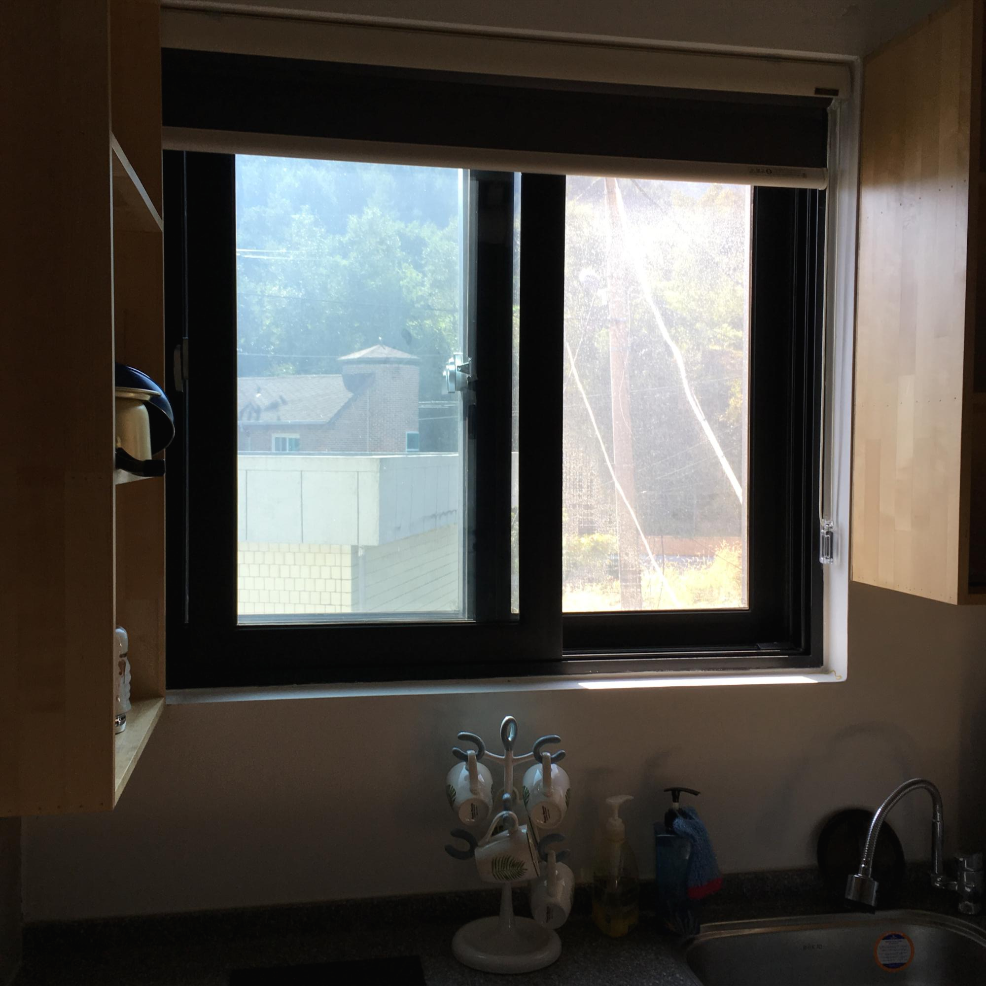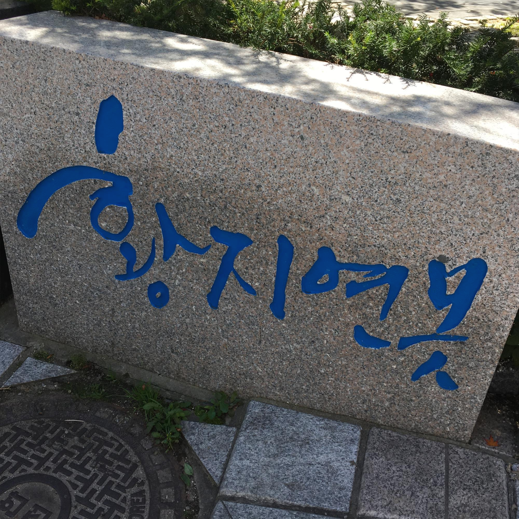 배수구 밖으로 삐져나온 잡초가 콧털처럼 느껴졌습니다.