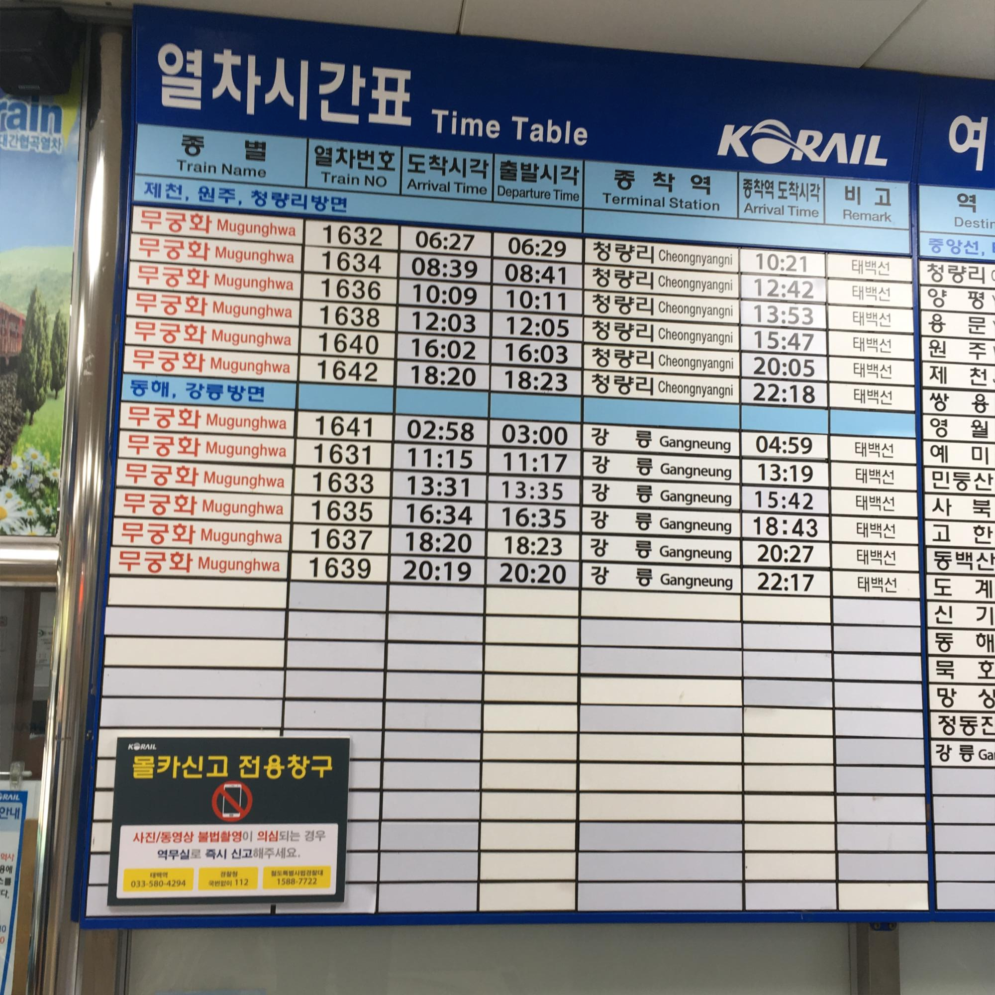 태백역 열차 시간표