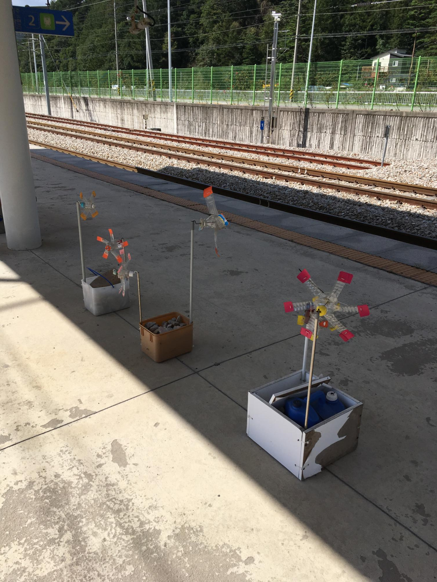 누군지 모르겠지만 역사 안에 페트병으로 만들어놓은 바람개비가 참 보기 좋았습니다. 바람개비가 돌고 있는 동백산역은 다른 역에서는 느끼지 못하는 동백산역만의 매력이 있었습니다.