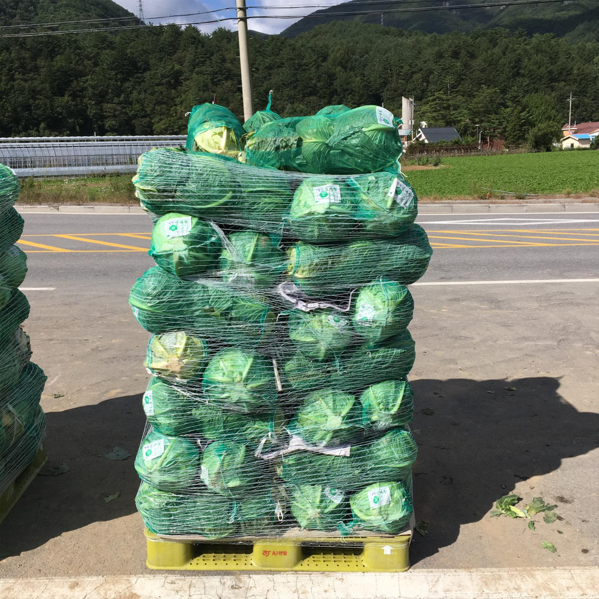 역으로 가는 길에 양배추 무리를 만났습니다. 이 양배추들은 태백에서 다른 도시로 가는 것일까요? 아님 다른 도시에서 태백으로 들어온 것일까요?