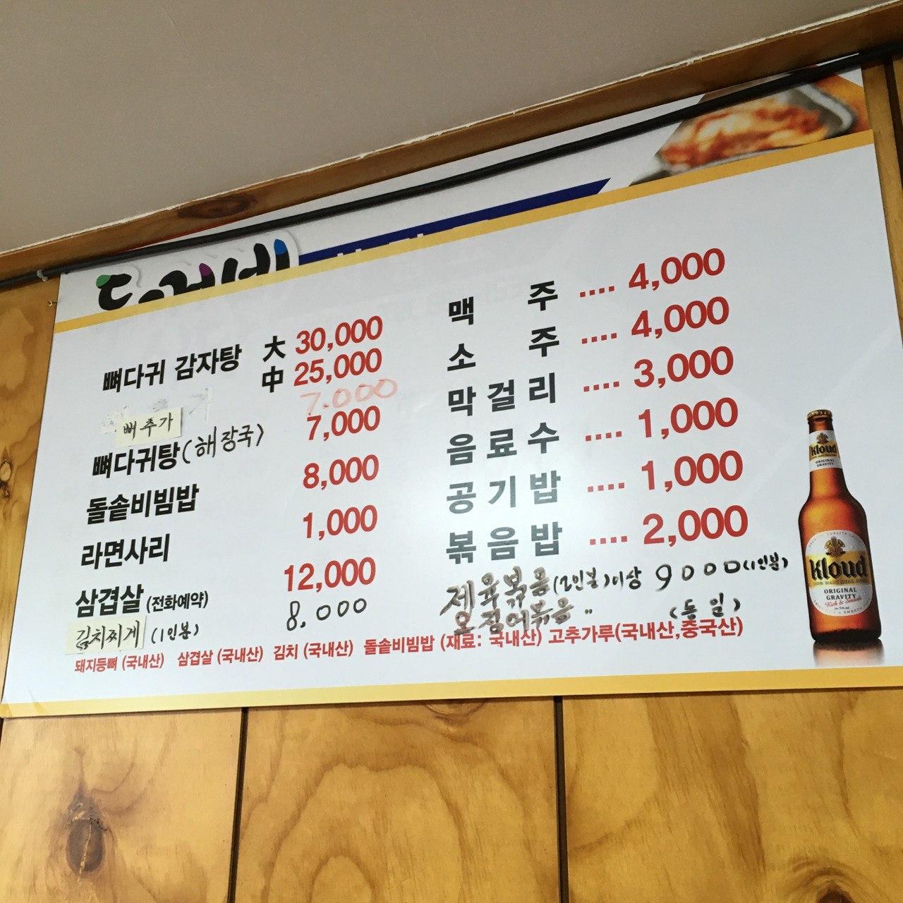 주문진 버스터미널 근처에 위한 곳. 원래 두꺼비식당이 있던 자리에 새롭게 생긴 음식점이다. 뼈해장국을 위주로 판다. 뼈해장국에 고춧가루를 듬뿍 넣어주시니 고춧가루를 싫어하는 사람은 미리 사장님께 말씀드리는 걸 추천한다. 생긴지 얼마 되지 않아 네이버나 카카오 등 지도에 등록되어있지 않은 곳.
