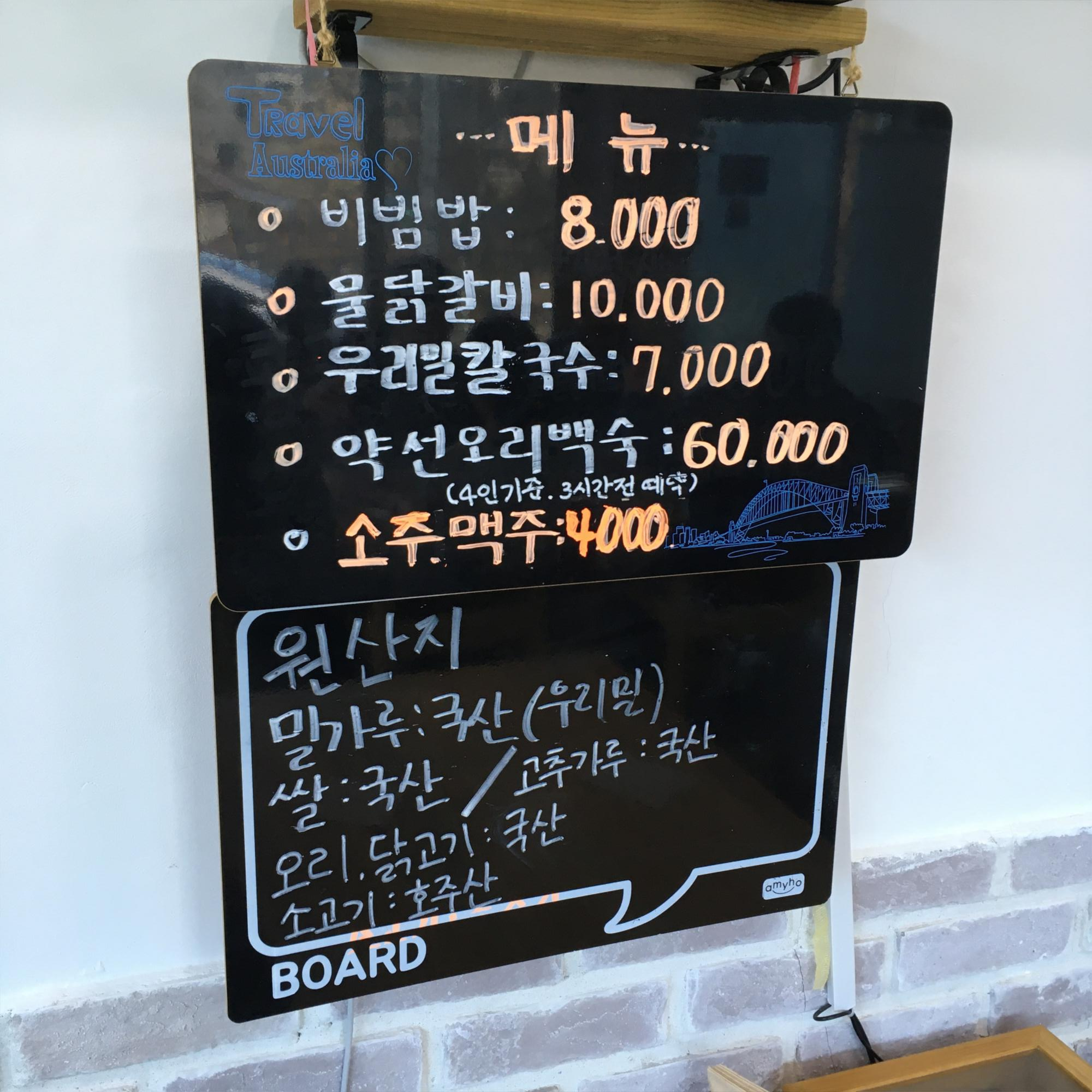메뉴 및 가격 Menu with Prices :
