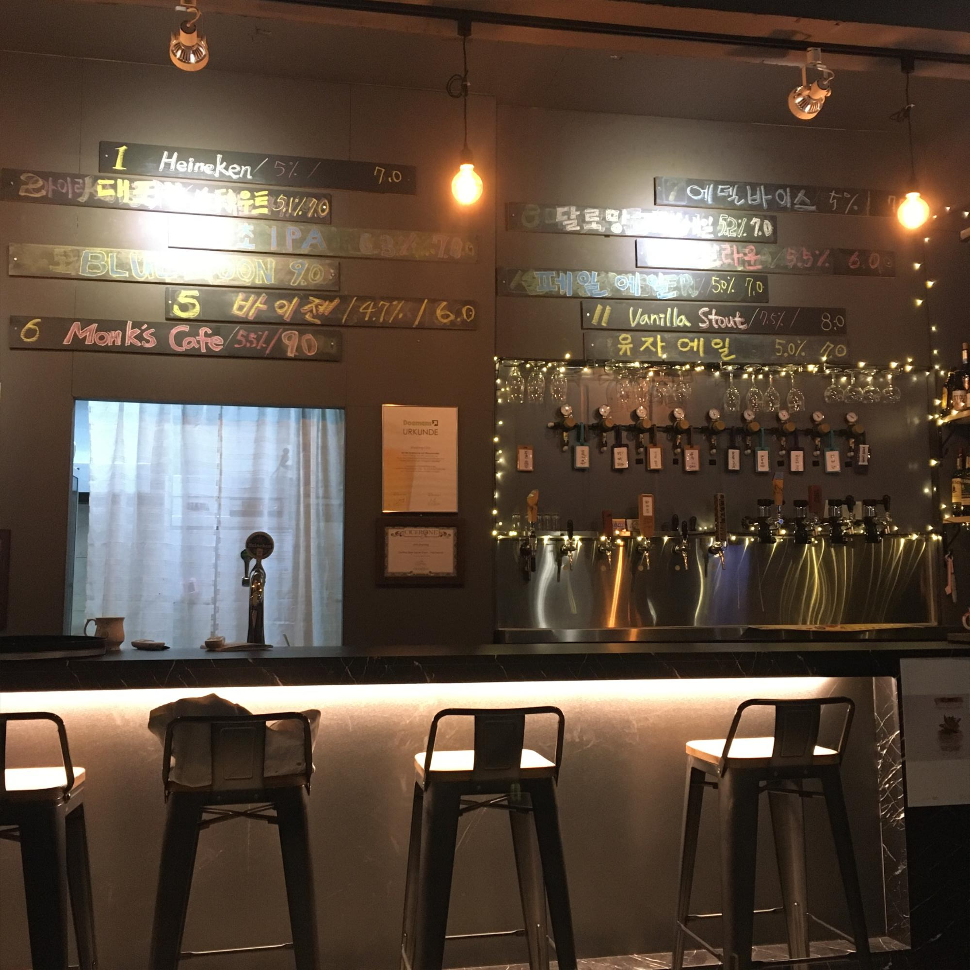 강릉 신도시 교동 택지에 위치한 수제 맥주집. 강릉 맥주 투사(?)로 불릴 만큼 맥주를 좋아하는 사장님이 운영하는 수제맥주집이다. 지역에서 수제 맥주 강의도 하시는 걸로 알고 있다. 주기적으로 메뉴가 바뀌는데 주로 우리나라 지역 맥주를 다룬다. 파이브문스는 강릉을 대표하는 경포호수에 뜬다는 5개의 달을 의미한다.