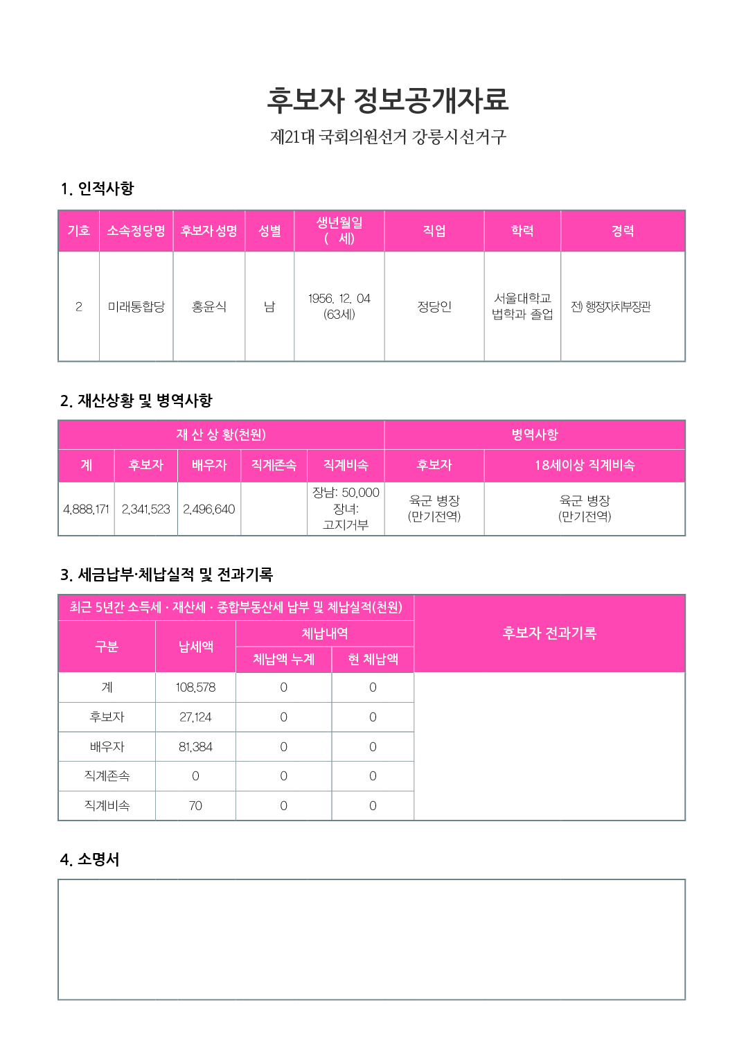 후보자 전과 기록 : 없음