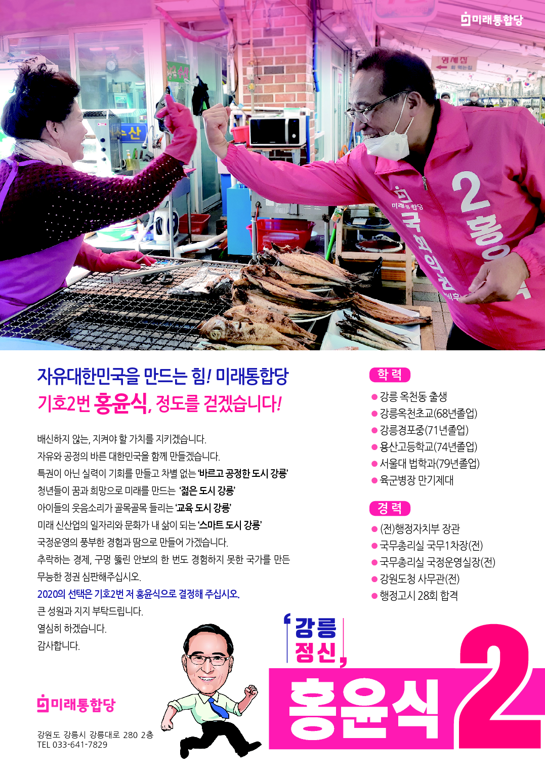 강원도 강릉시 선거구 후보자 기호2번 홍윤식 (미래통합당)