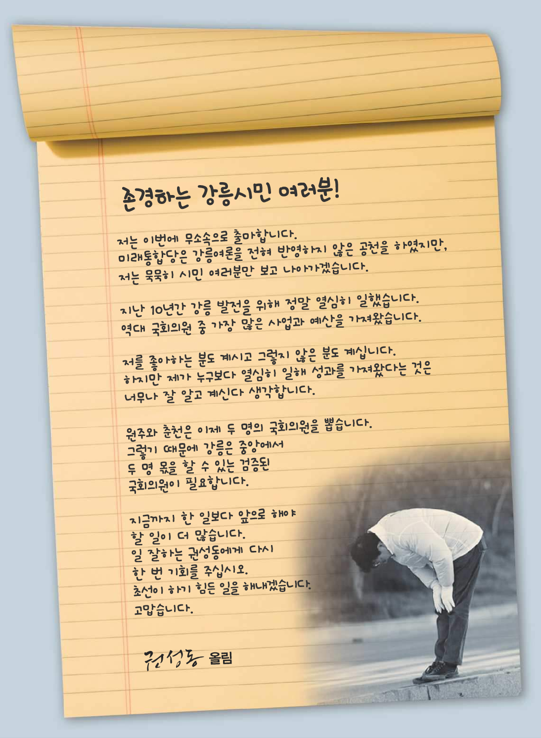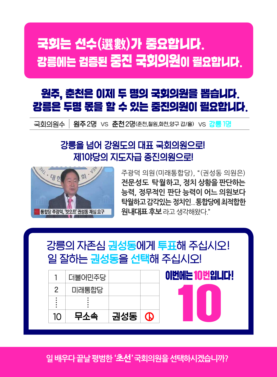 강원도 강릉시 선거구 후보자 기호10번 권성동 (무소속)
