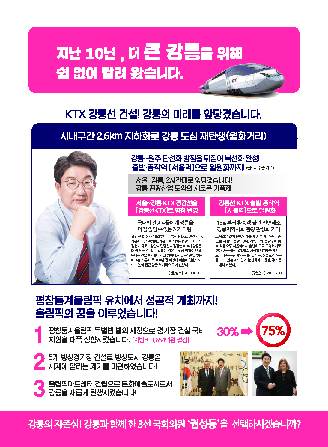 4선의 정치력으로 제2혁신도시를 강릉으로 가져오겠습니다.