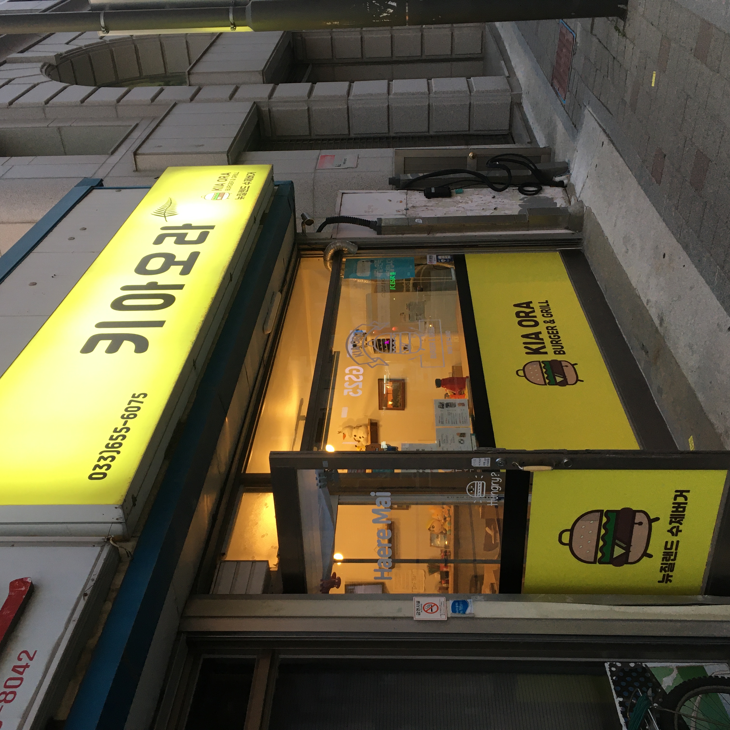 강릉 시내에 위치한 수제버거 집. 뉴질랜드에 있는 한인 음식점 느낌이 가득한 곳이다. 키아 오라는 뉴질랜드 원주민 마오리언어로 안녕하세요라는 뜻이다.