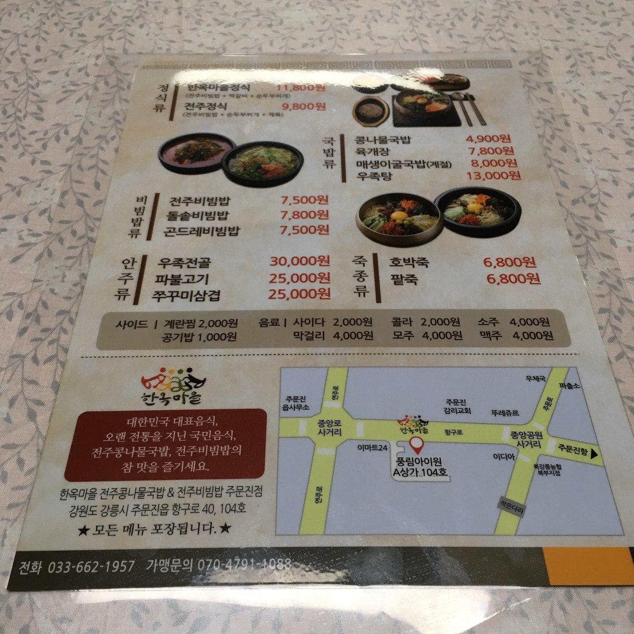 최근 생긴 주문진 풍림 아이원 아파트 상가에 위치한 콩나물국밥집. 전주식 콩나물 국밥과 비빔밥을 먹을 수 있다.
