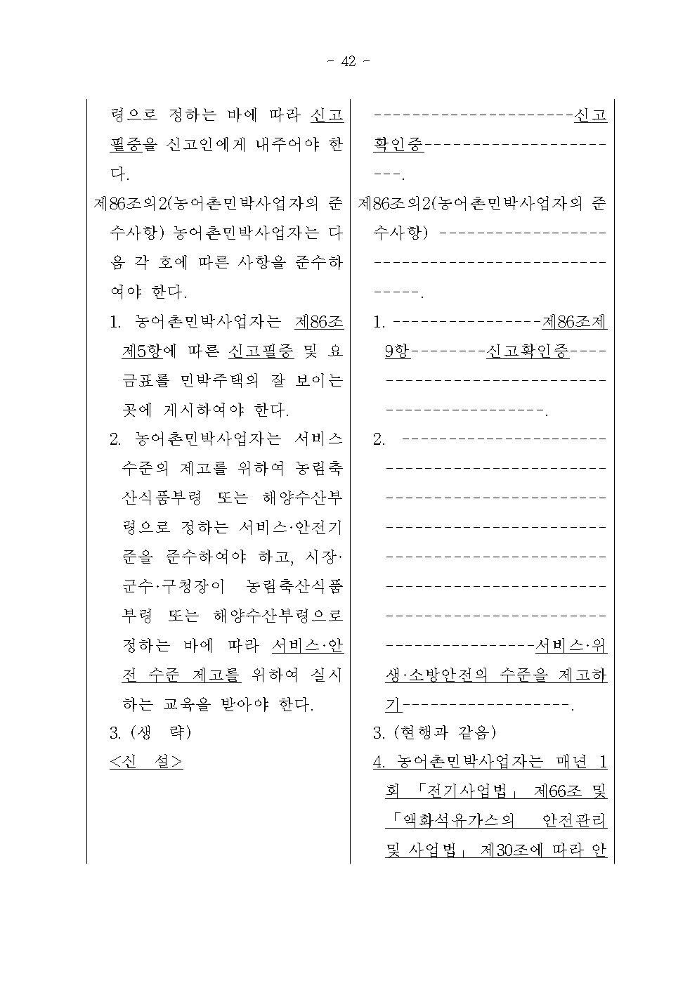 제86조의2(농어촌민박사업자의 준수사항) ------------------------------------------------.