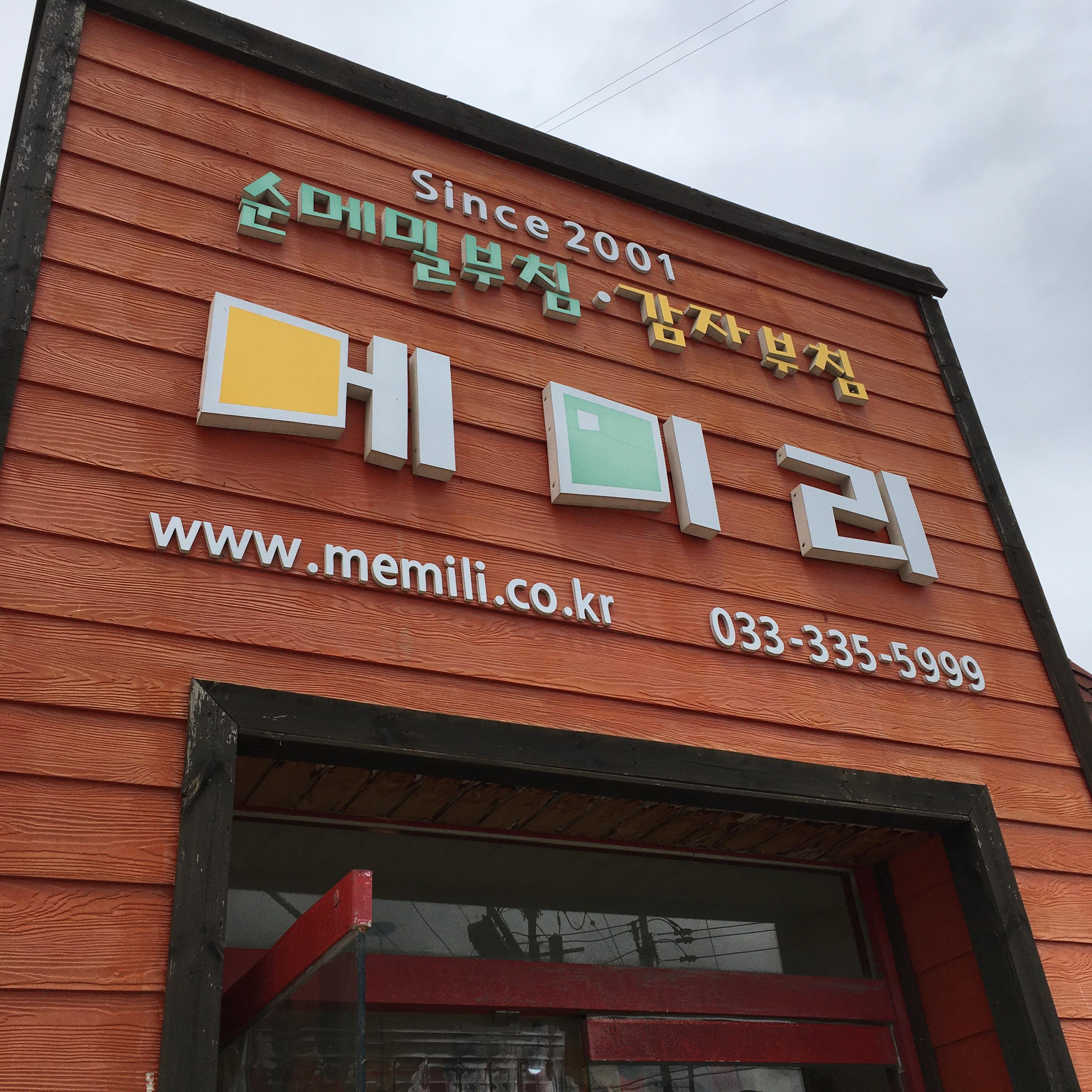 진부 버스터미널 바로 앞에 있는 메밀부침, 감자부침 전문점. 부침은 쉽게 말해 얇은 부침개를 생각하면 되고 전병은 부침개에 야채와 당면등을 넣어 말은 것으로 생각하면 된다. 다른 블로그에서는 주문과 동시에 즉석에서 부침과 전병을 부쳐준다고 했는데, 강다방이 갔을 때는 이미 만들어진 부침과 전병을 데워주셨다.