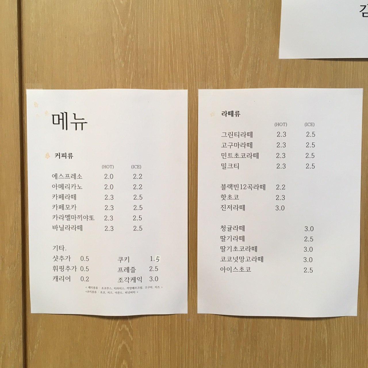 메뉴 및 가격 Menu with Prices :
