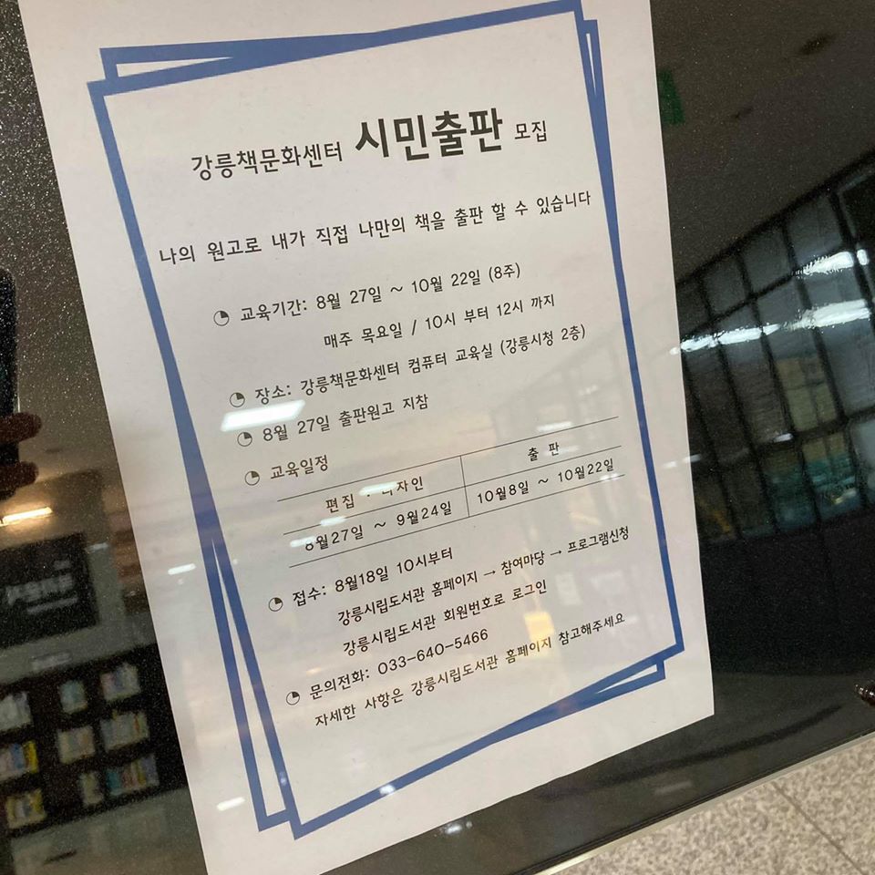 강릉책문화센터 <강릉은 모두 작가다> 오프라인 접수처