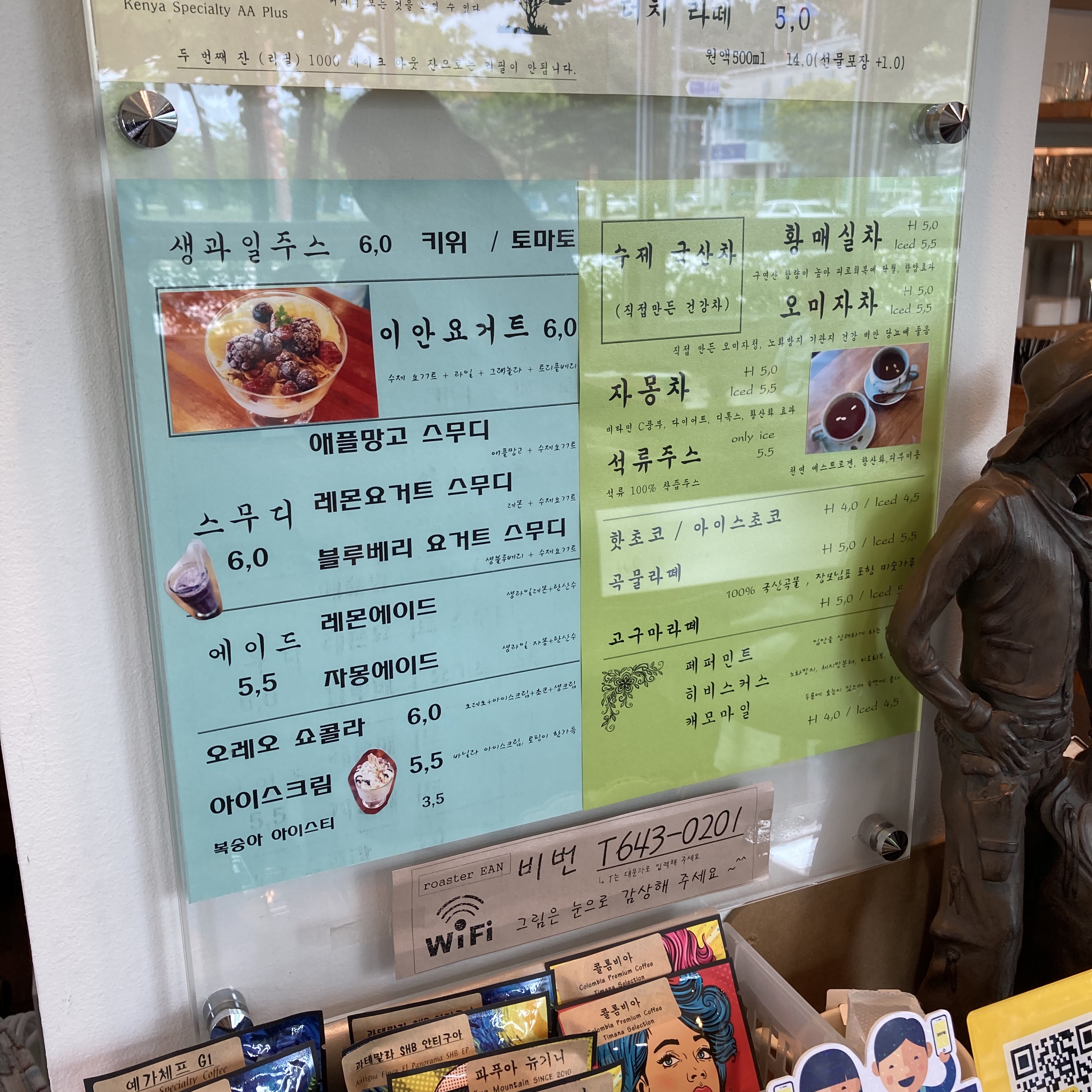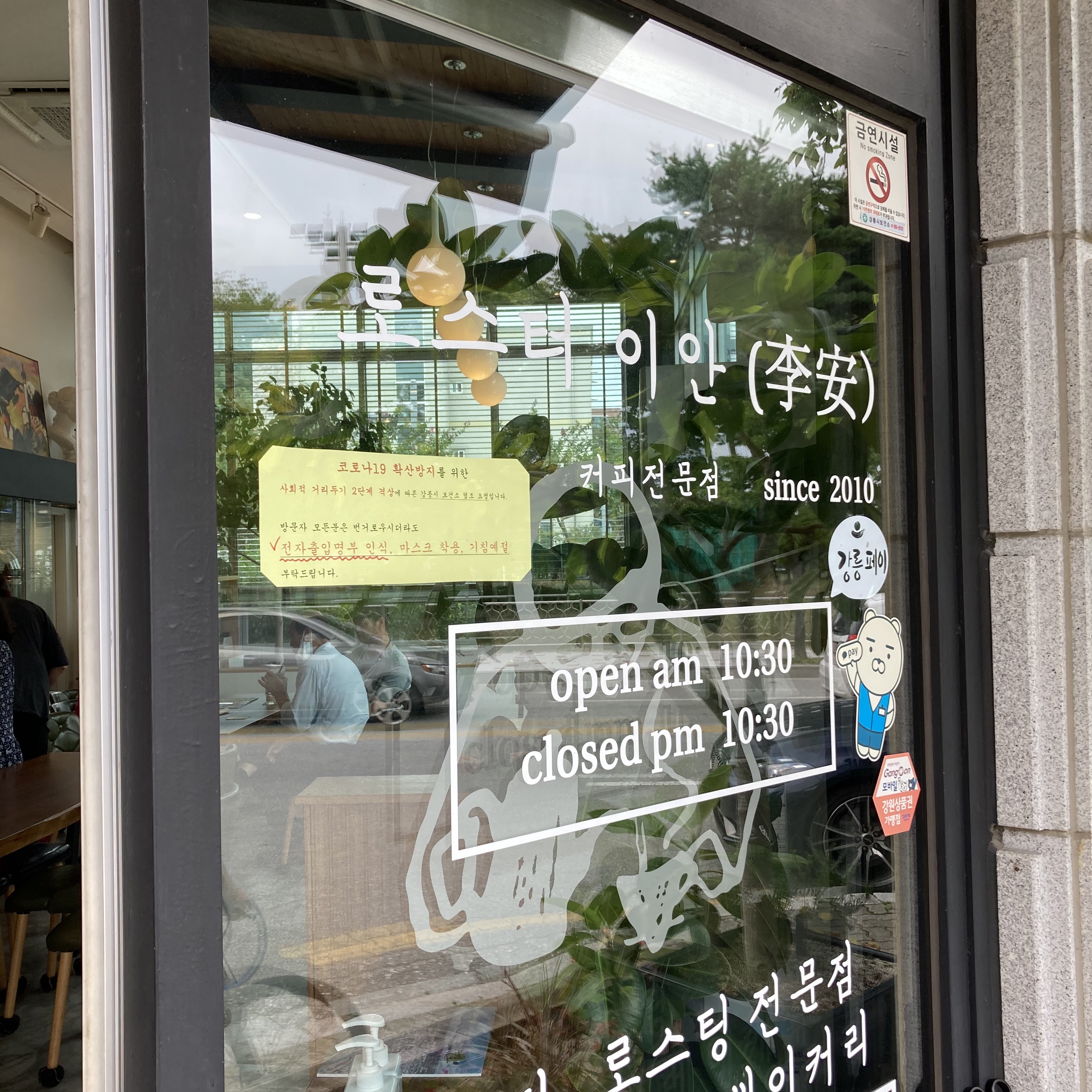강릉 교동택지 신도시, 강릉원주대 근처에 있는 카페. 원래 이름은 삿포로였는데 로스터 이안으로 바꼈다. 아메리카노 2잔과 치즈케익이 함께 나오는 세트가 있다. 내부에 큼직큼직한 유화 그림들이 많다.
