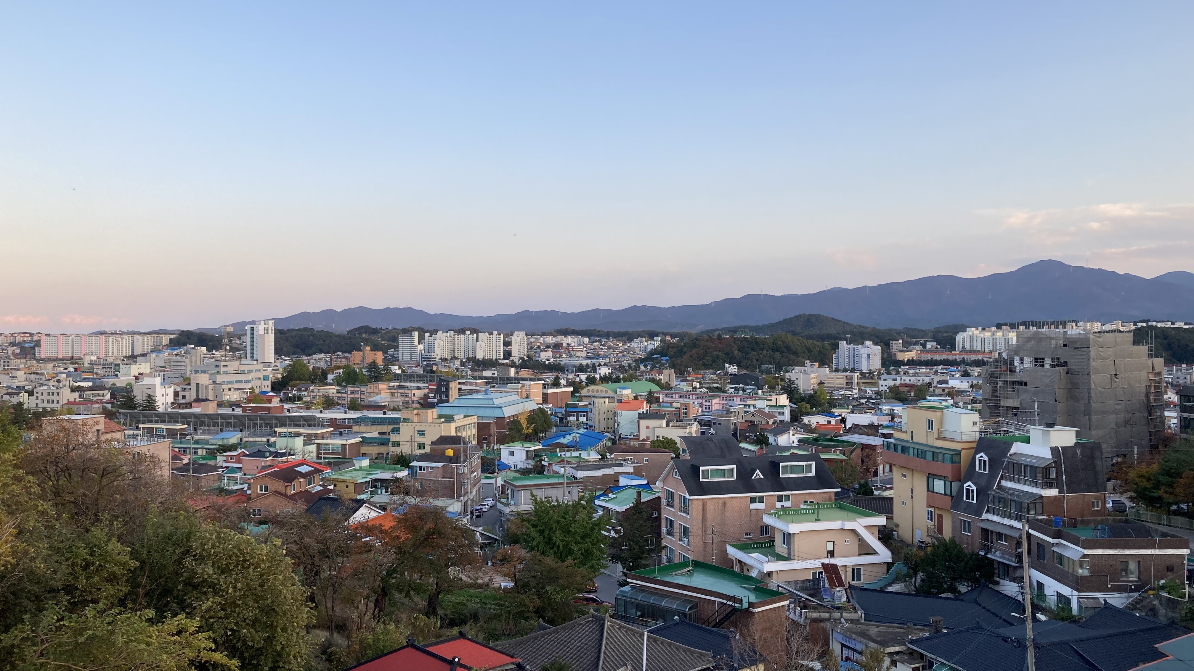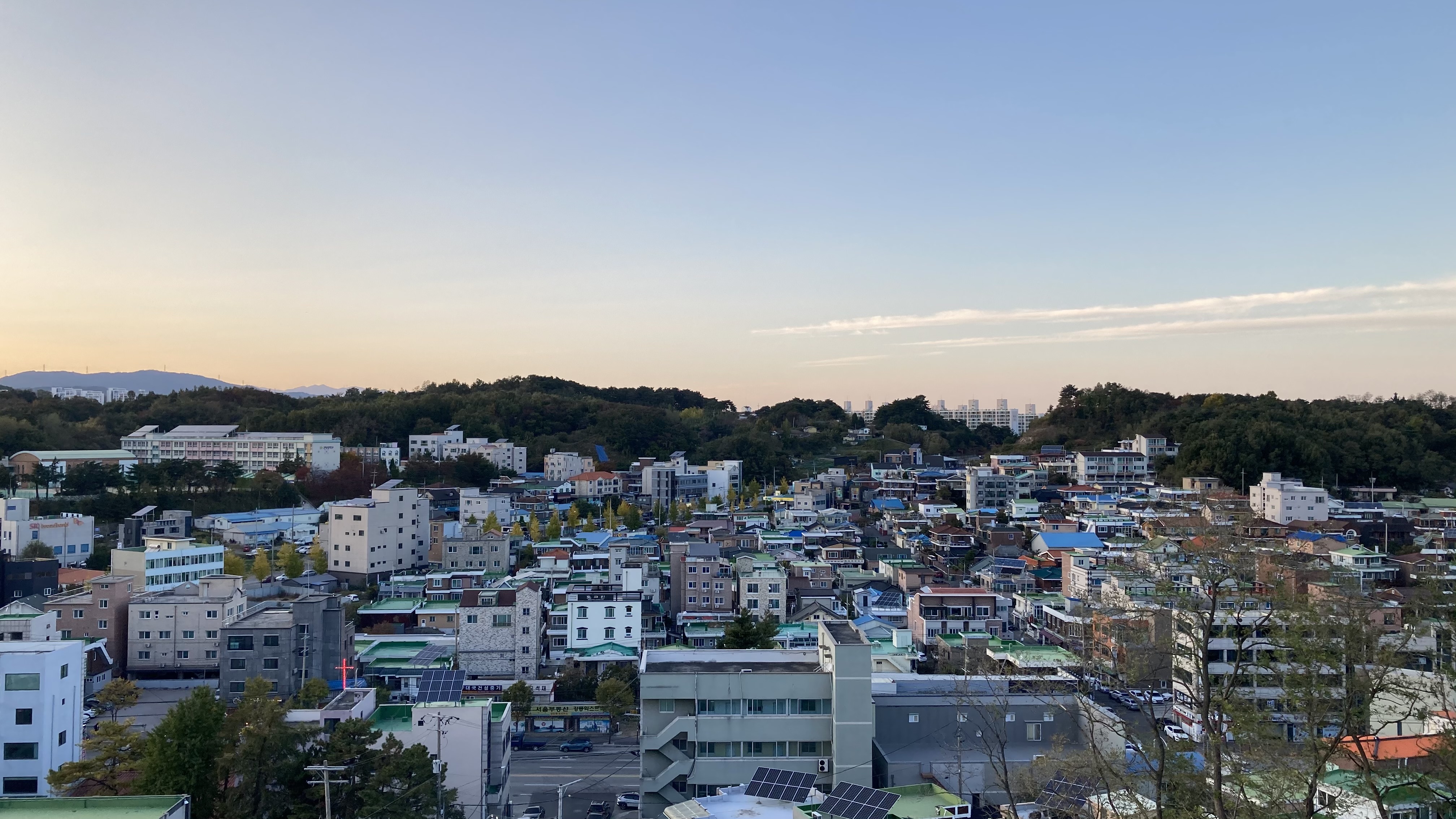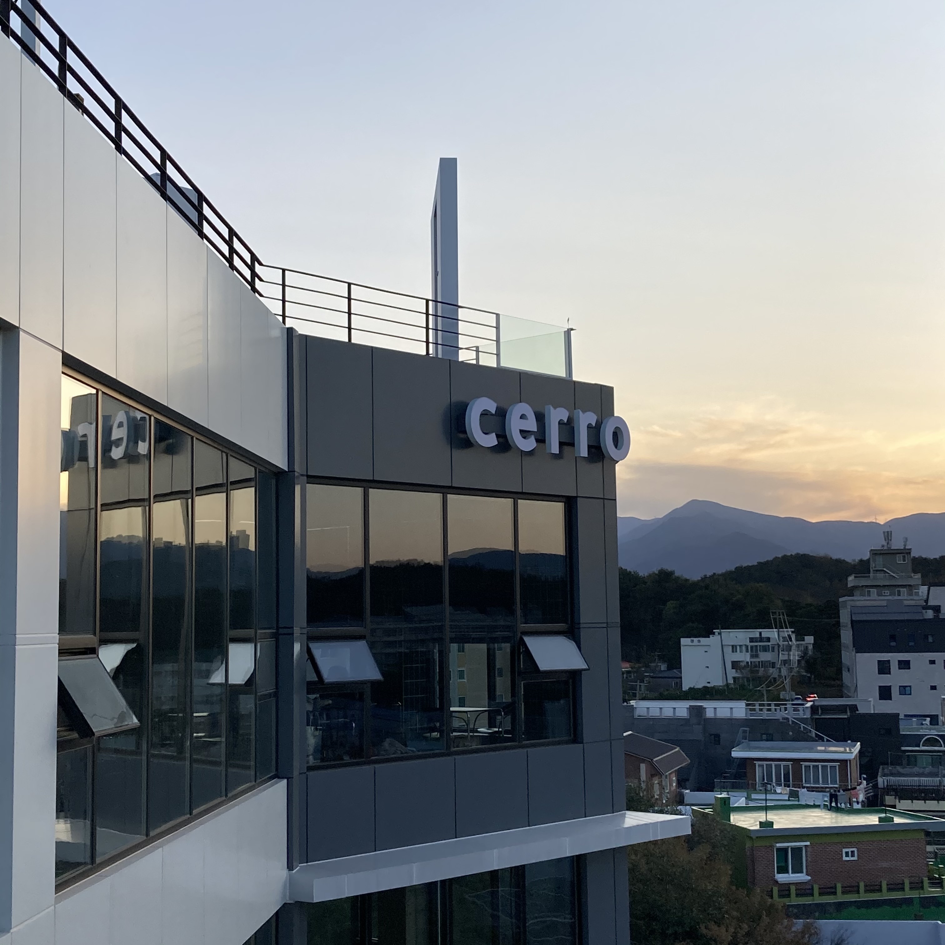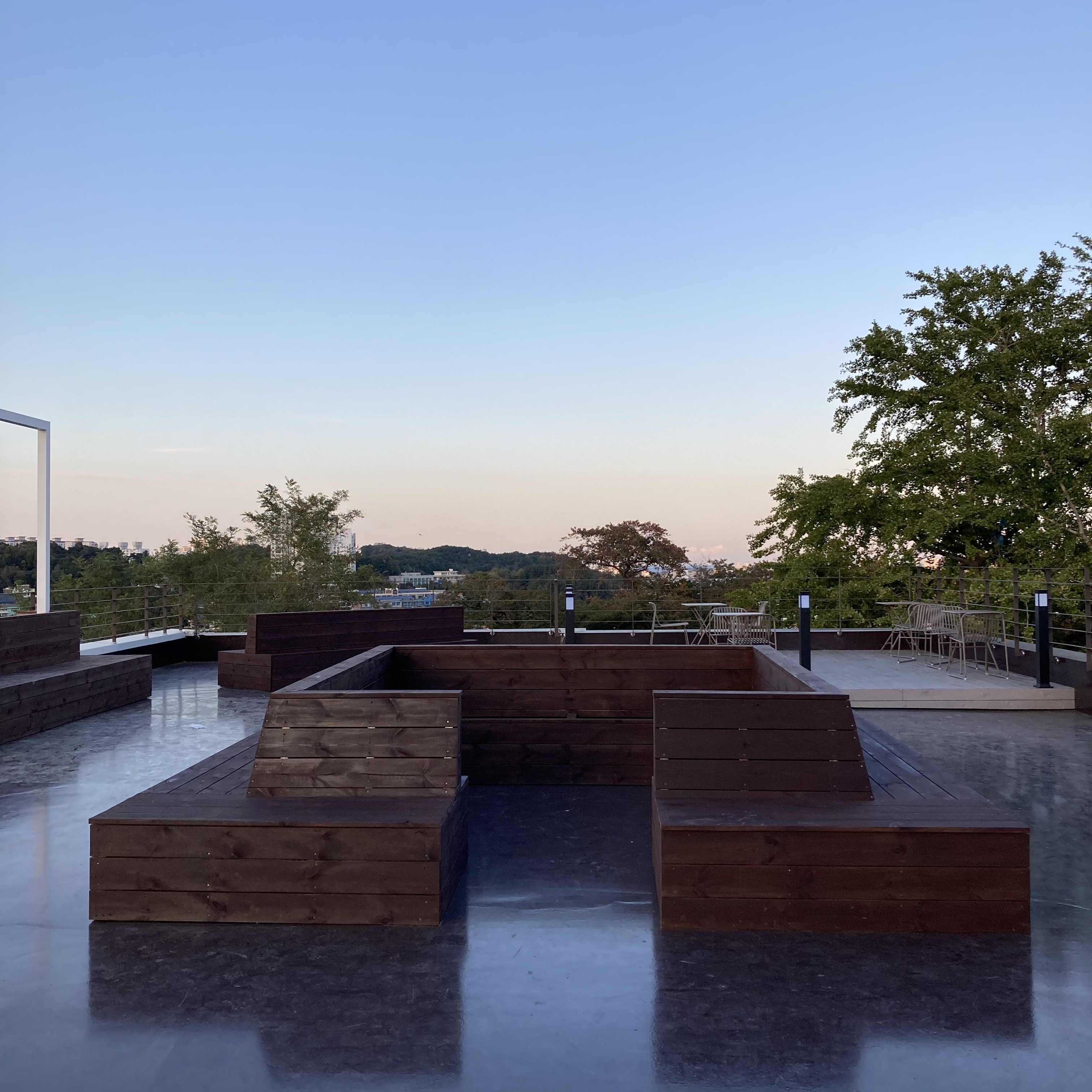 강릉 버스터미널 근처 홍제동에 새로 생긴 카페. 높은 언덕 위, 4층에 있어 전망이 참 좋다. 옥상에는 사진 찍기 좋도록 포토존도 만들어 놨다.