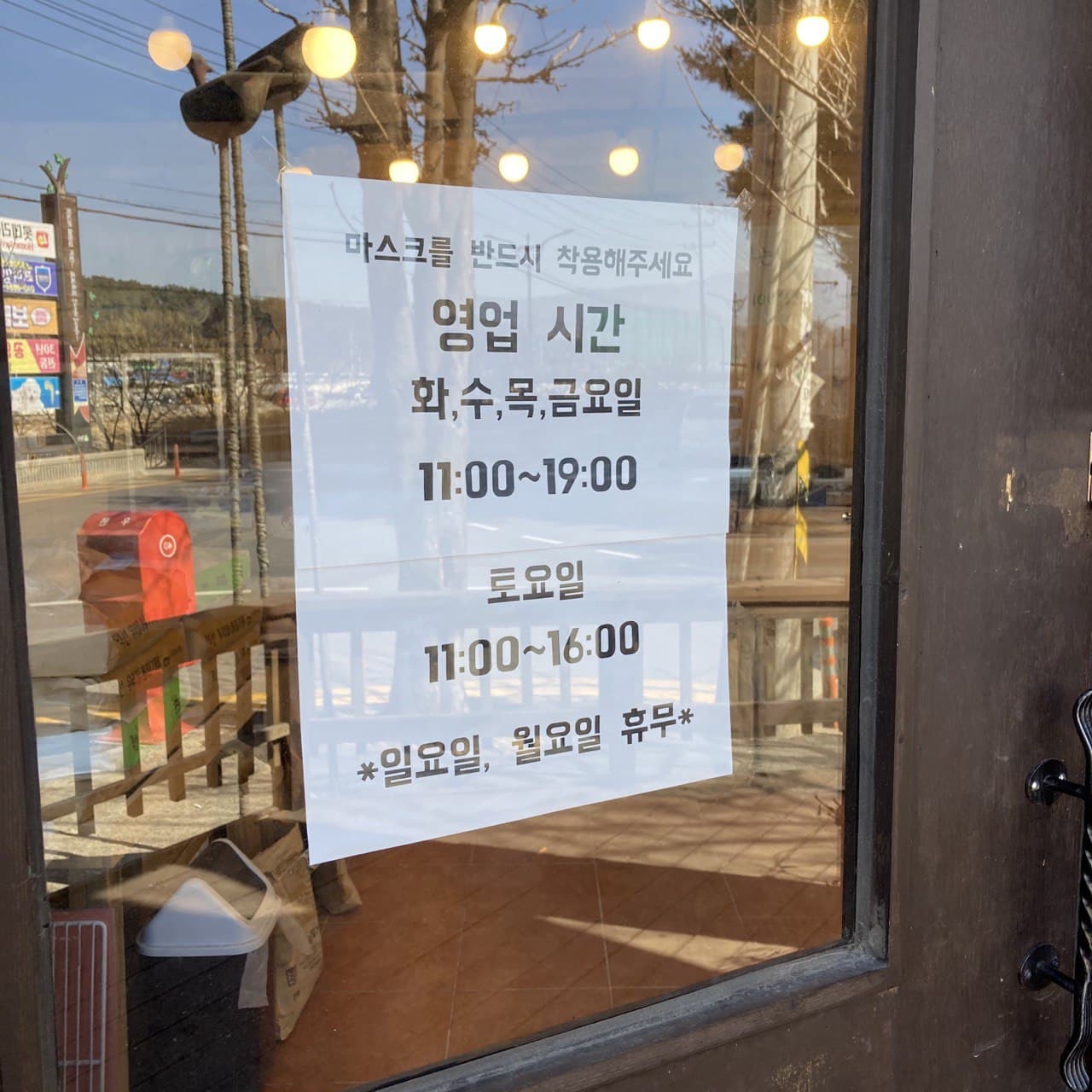 매주 일요일, 월요일 휴무 Closed Every Monday, Tuesday