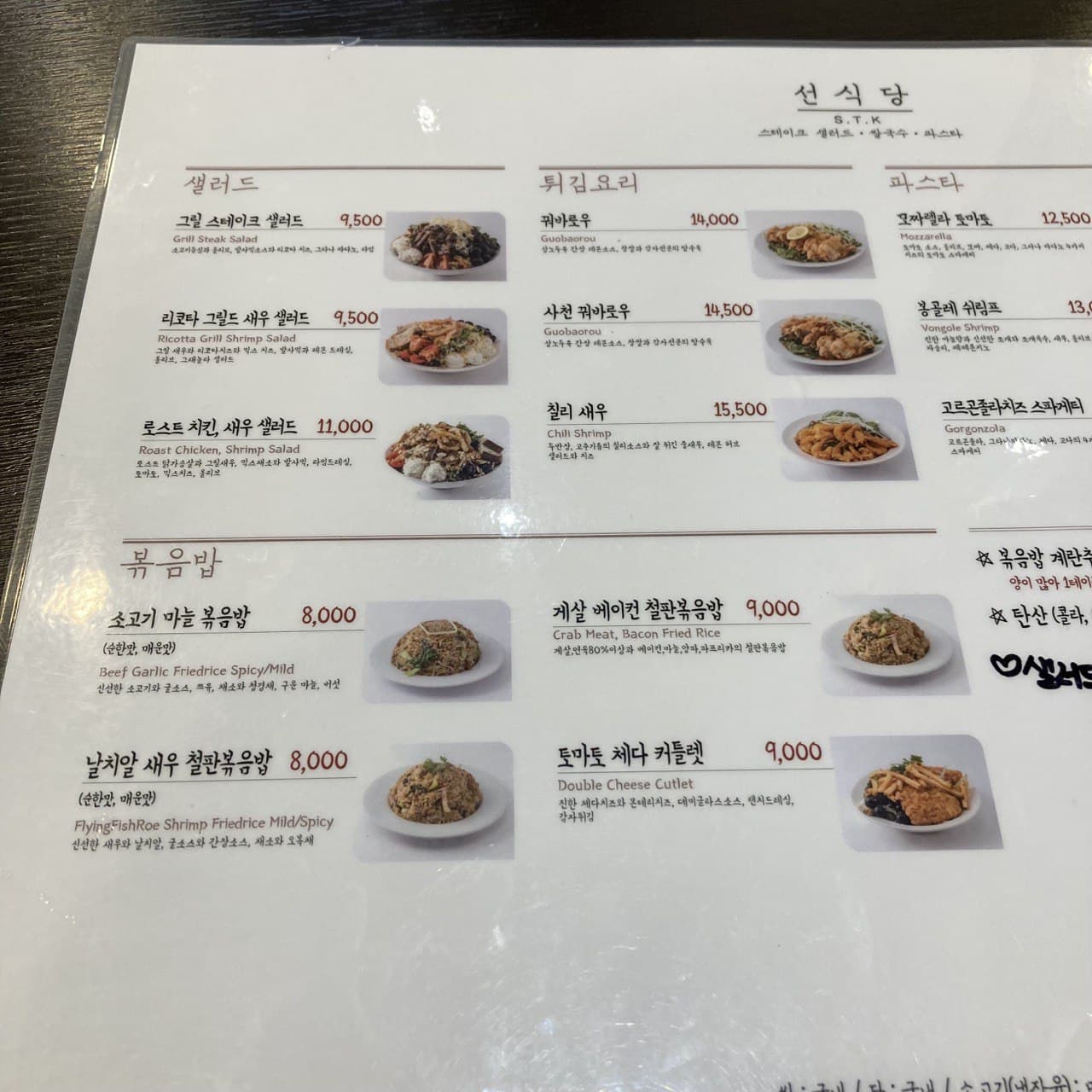 메뉴 및 가격 Menu with Prices :