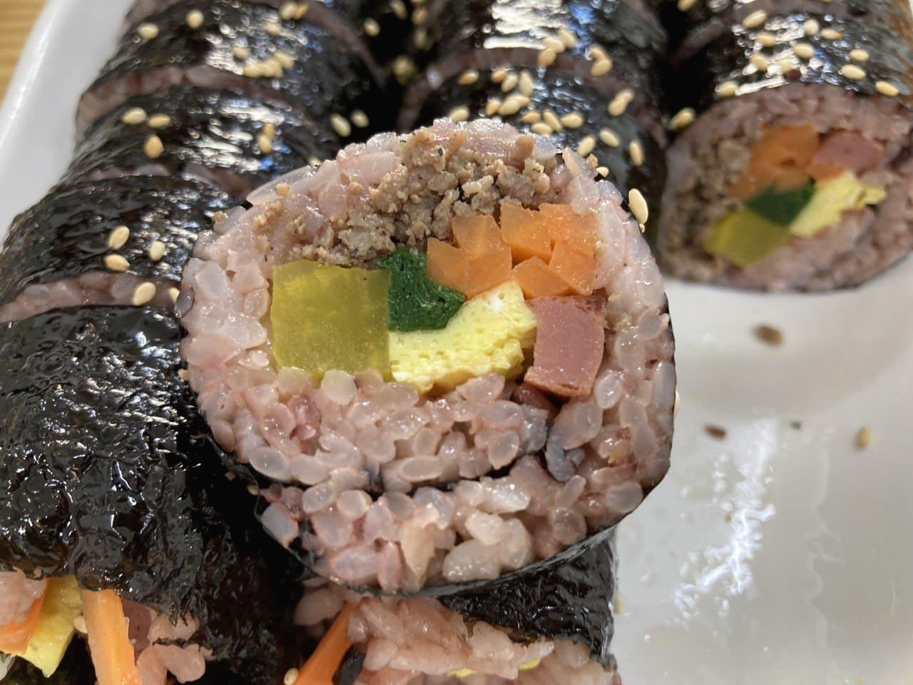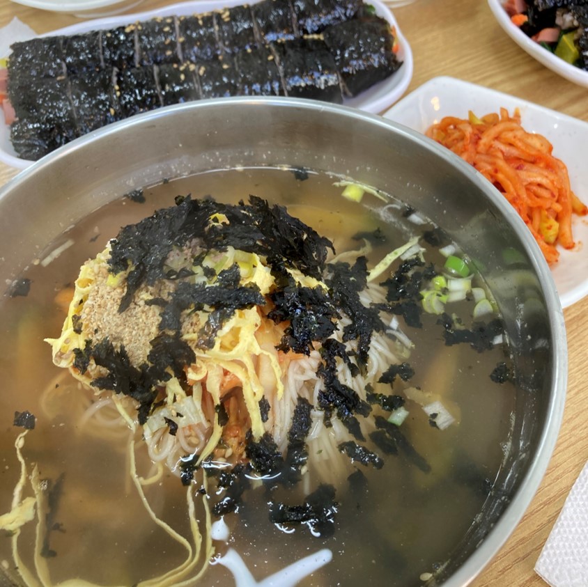 칼국수 또는 잔치국수와 소고기김밥을 세트로 판매하는 곳. 다른 곳에서 장칼국수 한 그릇 먹을 가격으로 소고기김밥을 함께 먹을 수 있다. 소고기김밥 내용물도 꽤 알찬 편이다. 처음 먹을 때는 뭐 나쁘지 않네 싶은데 지나고 나면 한 번씩 생각나는 곳이다. 네이버나 카카오 지도에 등록되어 있지 않아 주변 직장인, 지역 주민들이 주로 가는 밥집이다. 저녁에는 영업하지 않고 점심부터 오후 5시까지만 영업한다.