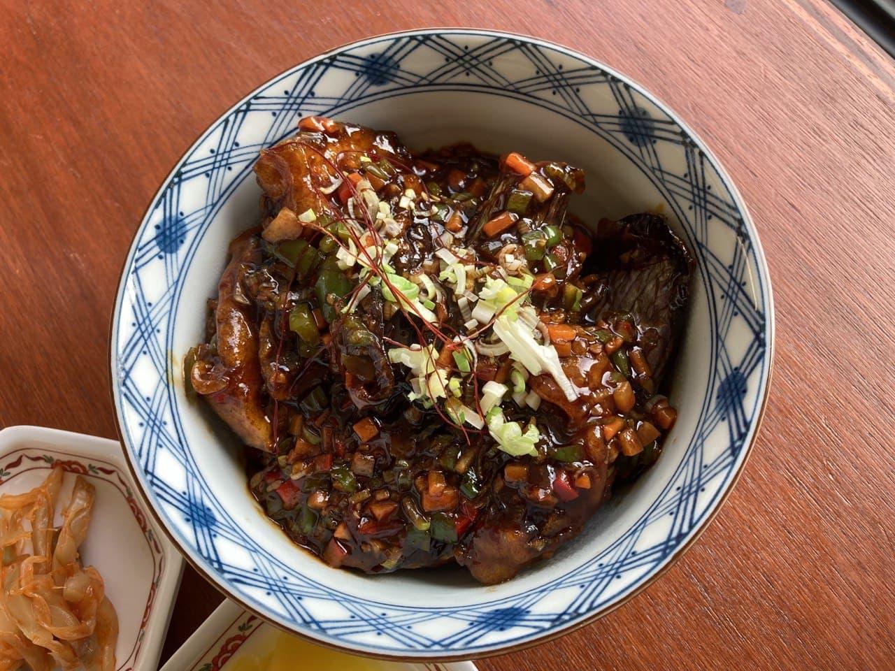 가지튀김덮밥 Gaji Twigim Deopbap Stir-fried Eggplant with Rice 10,000원