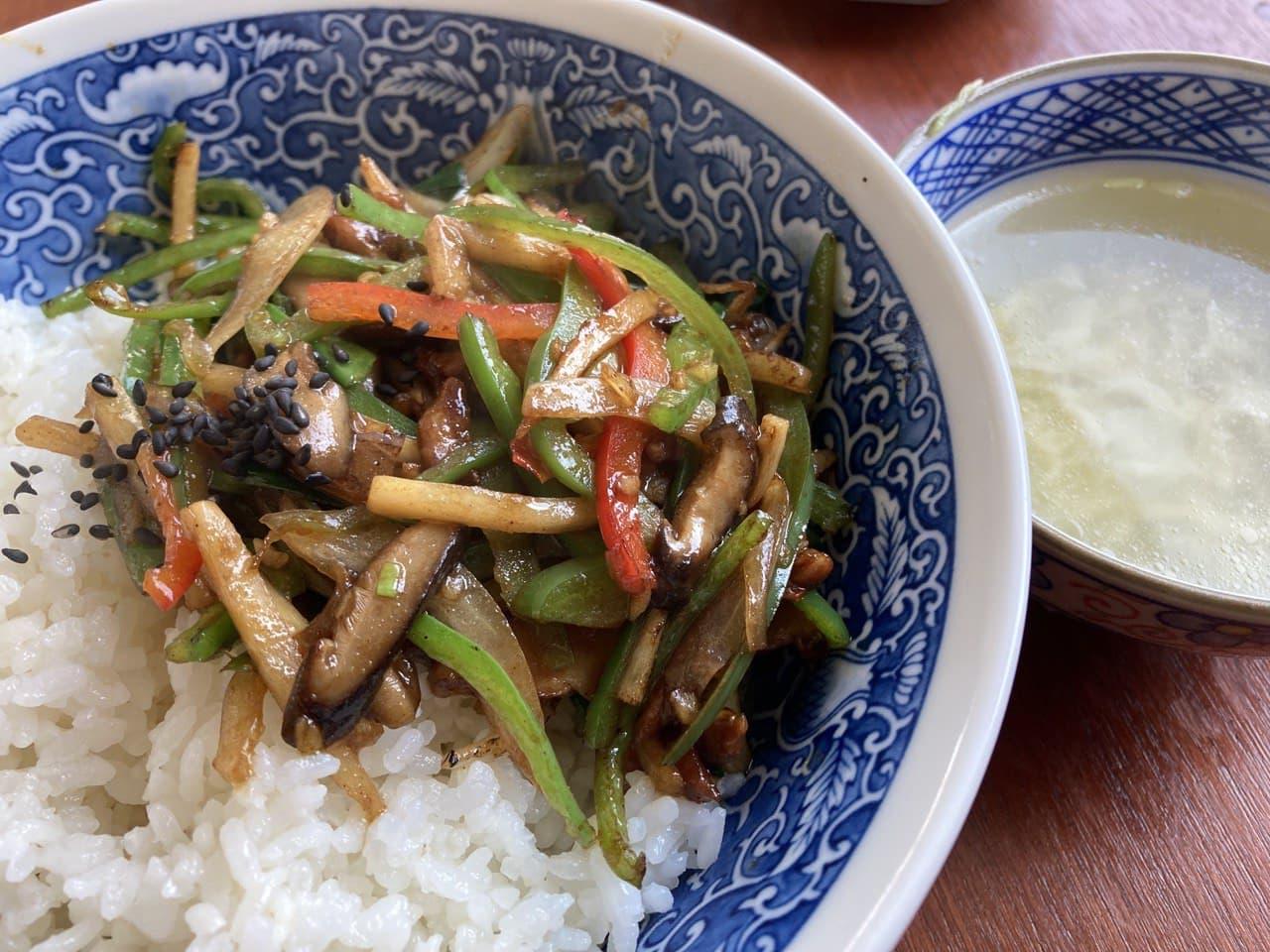 고추잡채덮밥 Gochujapchae Deopbap Stir-fried Chili Peppers and Pork with Rice 8,000원