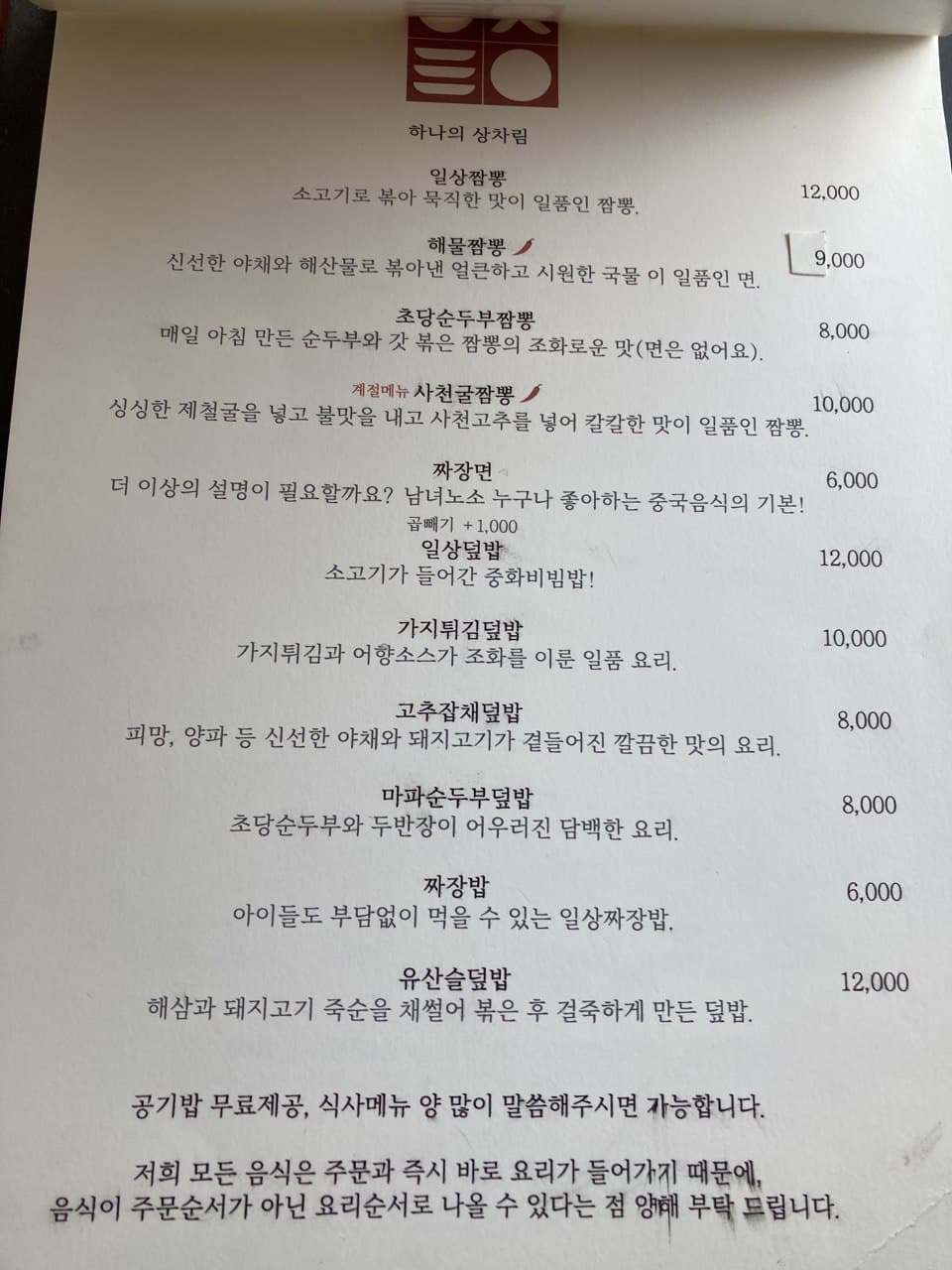 일상짬뽕 Ilsang Jjamppong Spicy Seafood Noodle Soup 12,000원