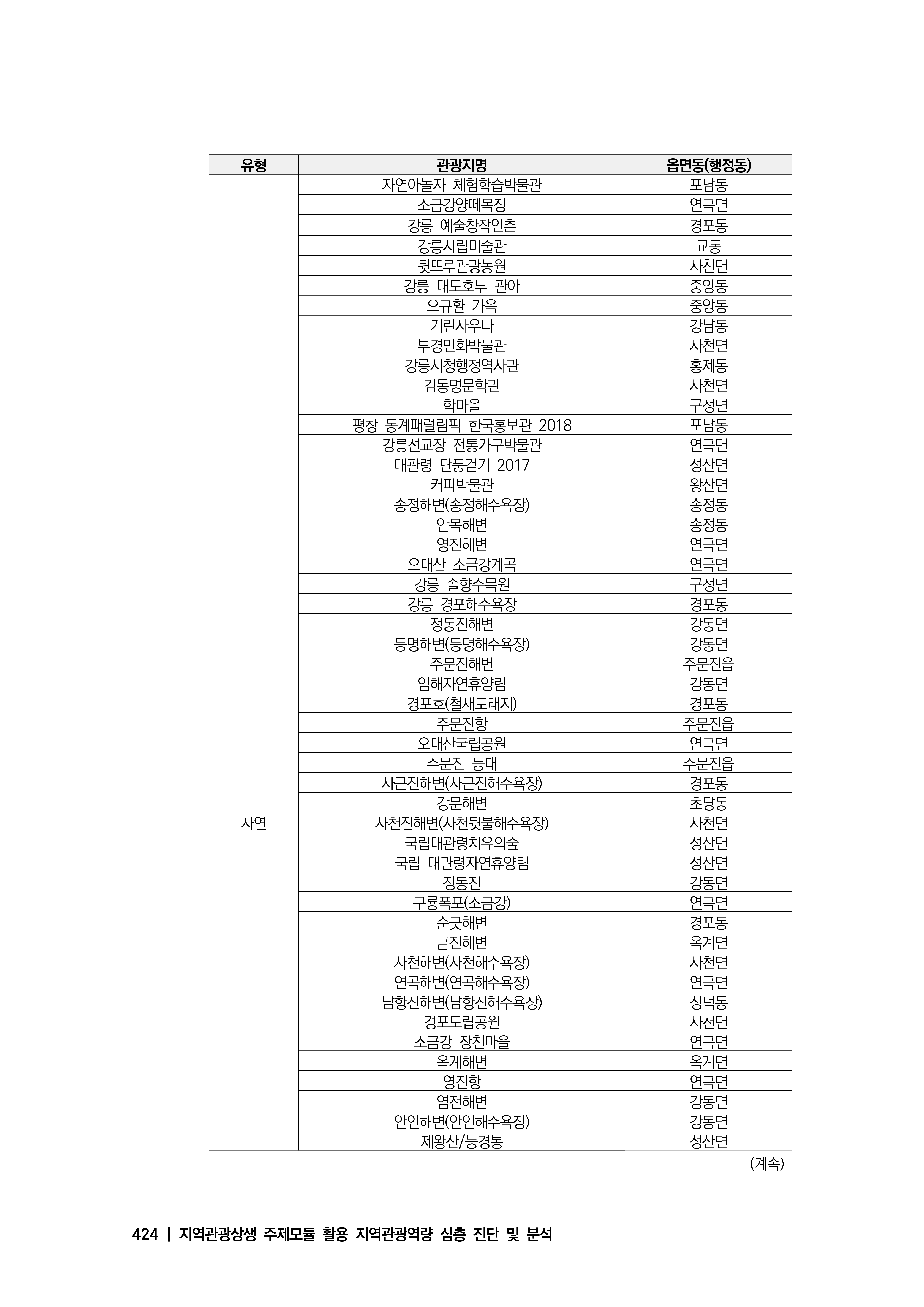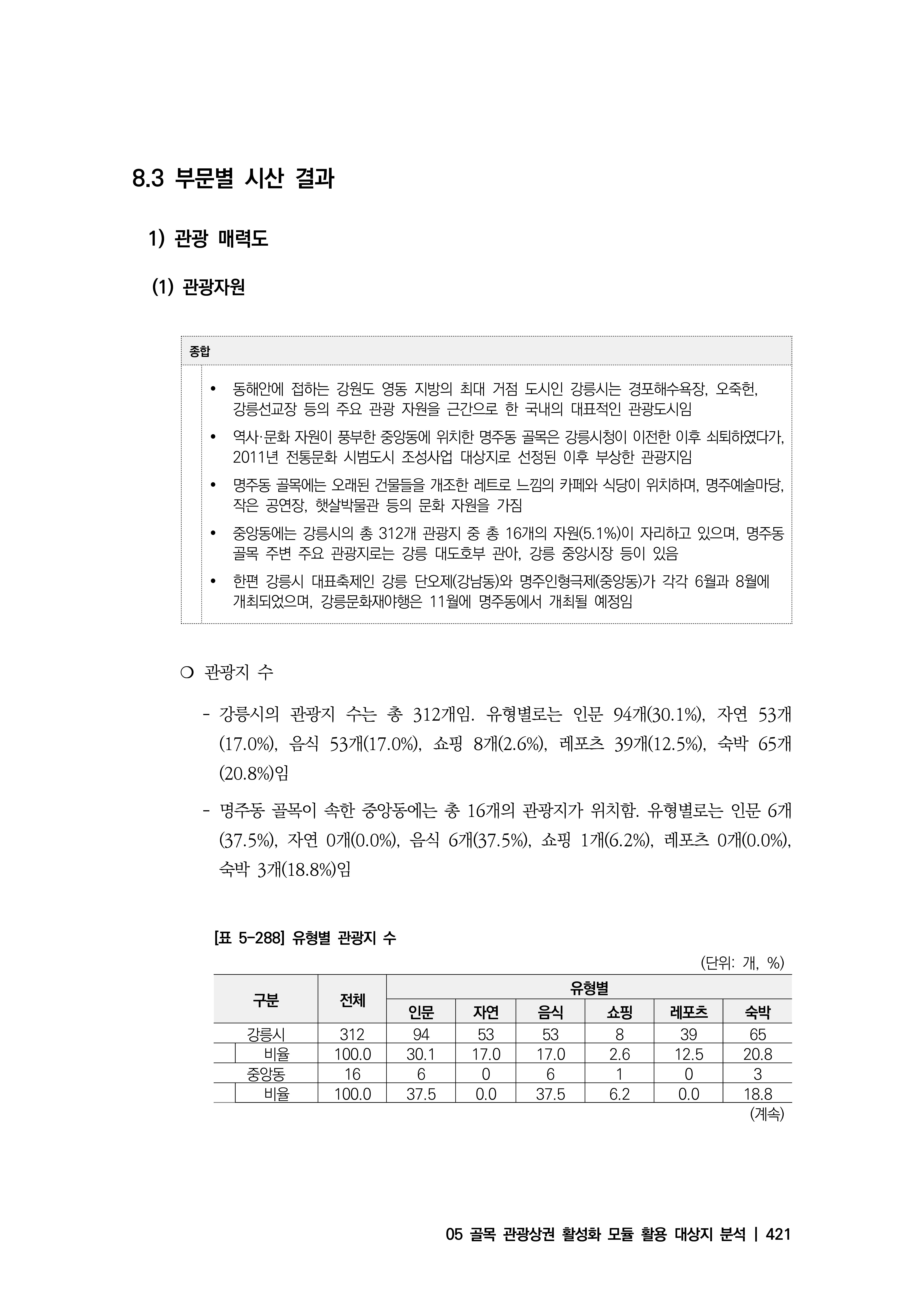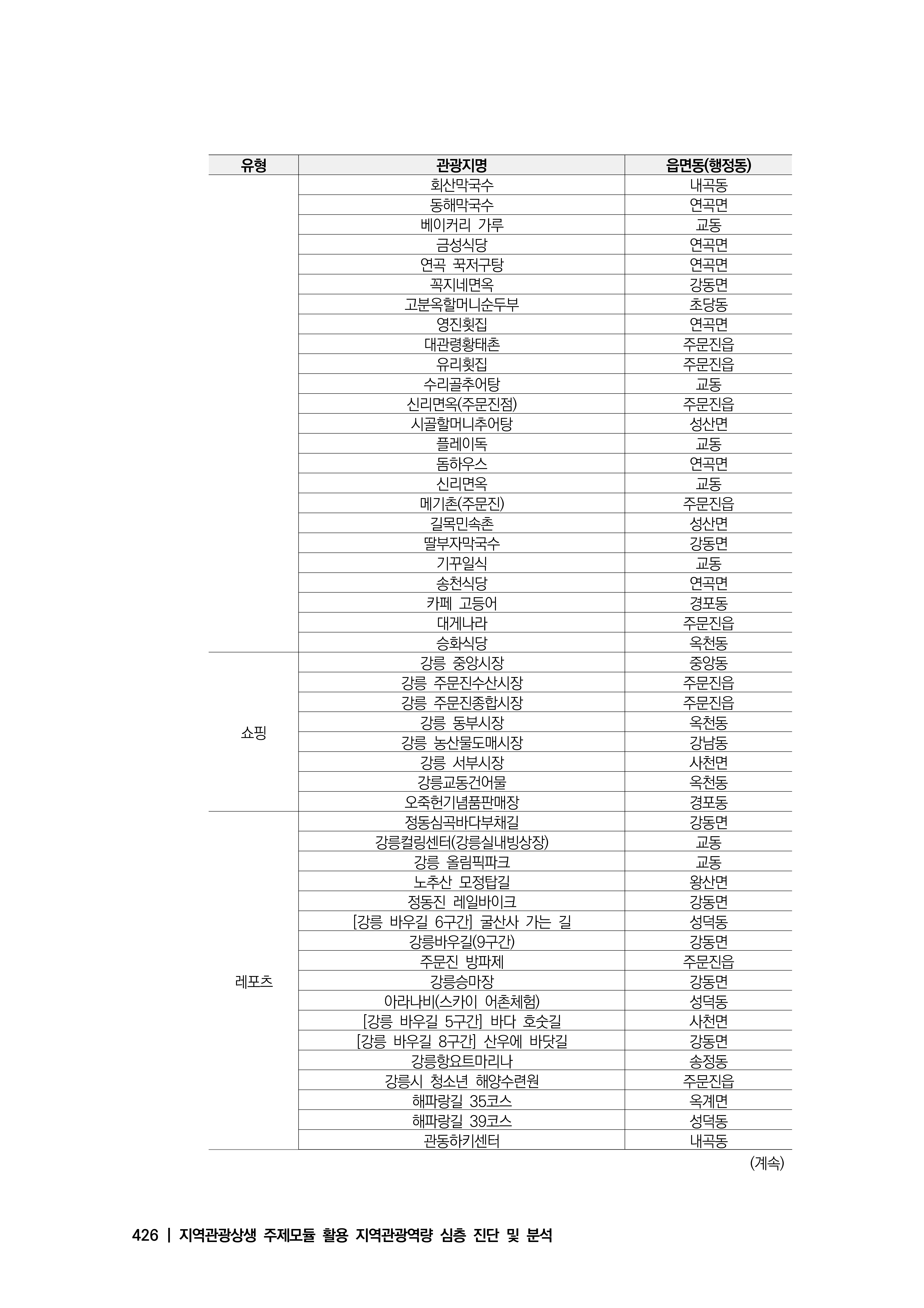 지역관광역량 심층진단 및 분석 보고서 (강릉 명주동 부분 발췌)