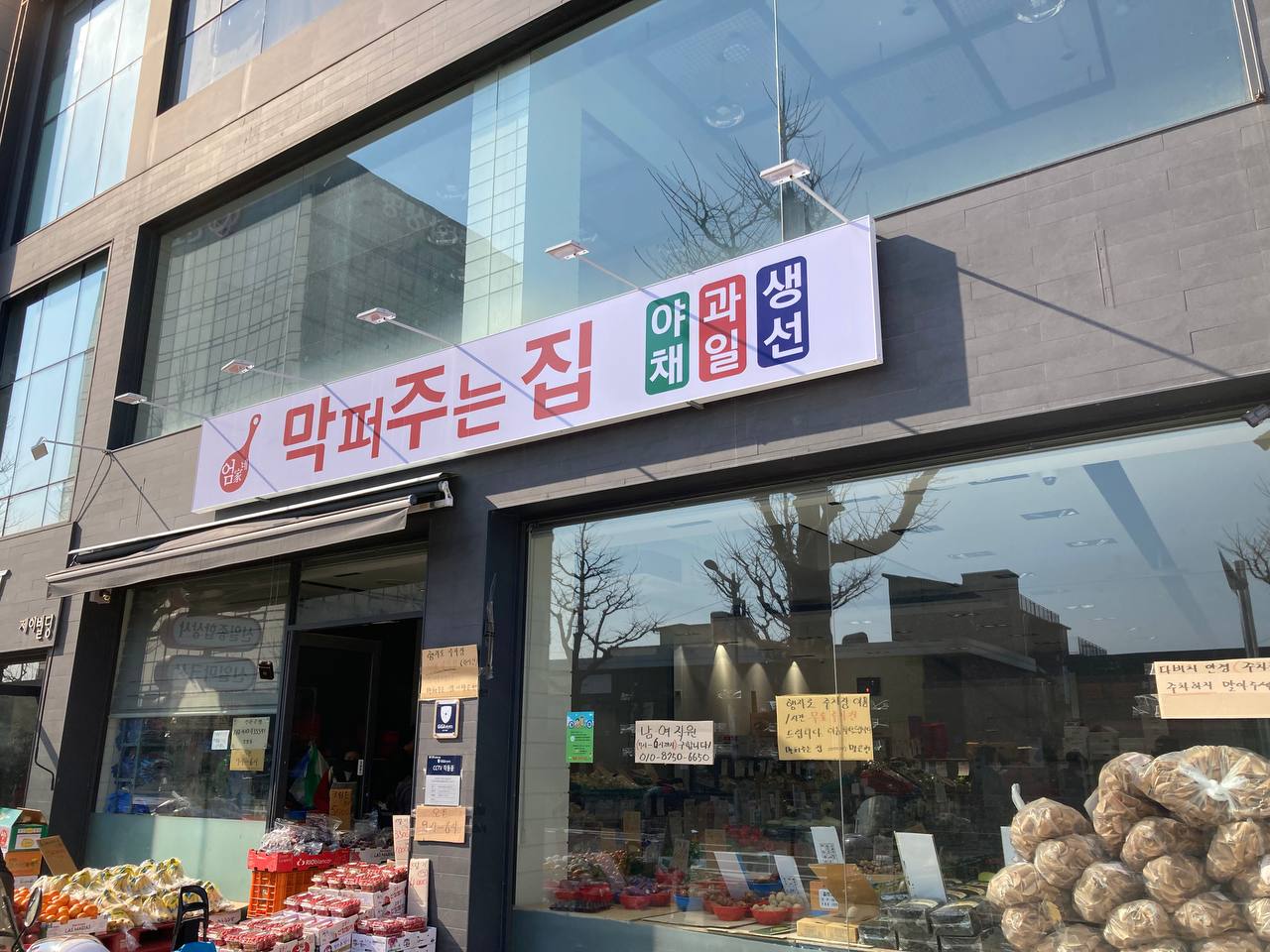 빈 매장에서 인테리어 없이 야채와 과일을 저렴하게 파는 곳이 강릉에도 생겼다. 강릉시내 홈플러스에서 남대천 방향으로 가는 길에 있다. 옛 강릉시 수협 자리, 다비치안경 옥천오거리점 바로 옆이다. 대형마트와 품질을 비교 할 수는 없겠지만 가격은 좀 더 저렴한 편이라 사람들로 항상 북적인다. 카드 결제는 안 되고 강원상품권과 온누리상품권은 사용 가능하다. 빈 가게에서 저렴하게 야채, 과일을 파는 깔세(?)가 다른 도시에서는 비교적 쉽게 찾아볼 수 있는데, 강릉에는 이곳이 유일한 것 같다.