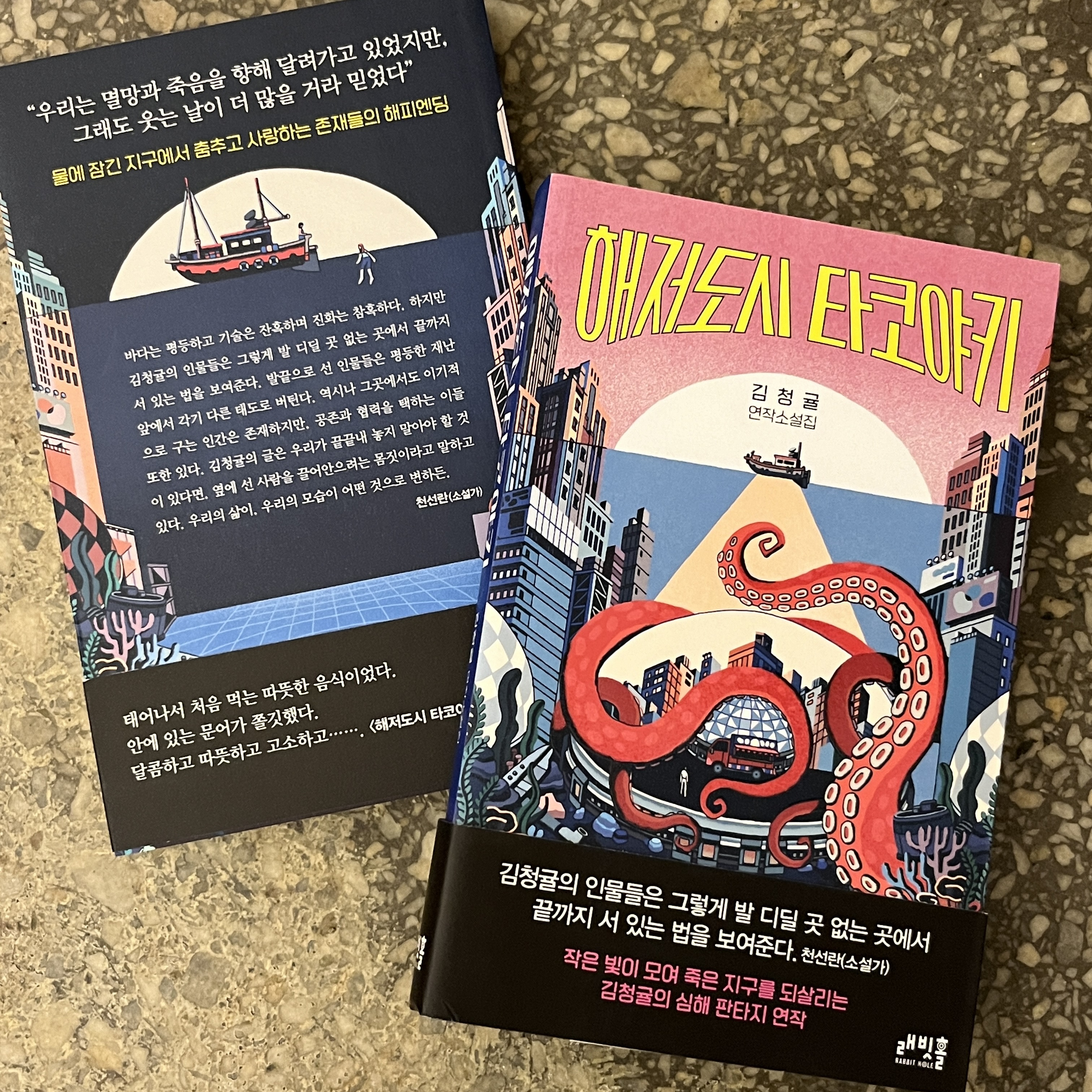 책 읽는 강릉 이달의 선정 도서 (2024년 11월)해저도시 타코야키, 김청귤 은 사회적으로 책 읽는 분위기를 만들기 위해, 강릉 지역에 있는 책방지기들이 함께 진행하는 프로젝트입니다. 매월 한 권의 책을 선정하여 함께 읽고 각 책방마다 자신만의 색을 입혀 책을 소개하거나 이벤트를 진행하고 있습니다. 혼자 책을 읽는 것도 좋지만, 다른 이들과 함께 책을 읽고 서로 이야기 나눌 때 책의 가치는 더욱 빛날 것으로 믿습니다. 책 읽는 강릉에 참여하는 각 책방마다 책을 소개하는 방식도 제각기 다르니 시간이 된다면 다른 책방도 들려 각 책방만의 매력을 발견해보세요!지구온난화로 모든 땅이 바다에 잠긴 암울한 지구를 배경으로 쓰여진 소설들. 암울한 현실 속에도 희망을 잃지 않는 이들의 이야기가 담겨있다. 단편 소설들..